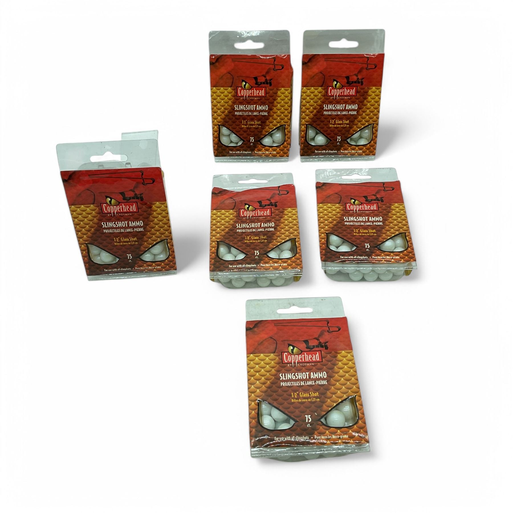 Lot 6679 Crosman Copperhead 1/2" Glass Shot Slingshot Ammunition, 75 Pack, X 6 Qty