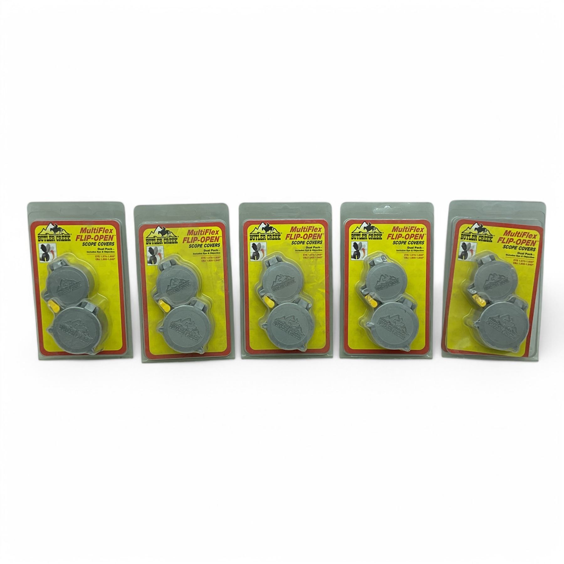Lot 6710 Butler Creek MultiFlex Flip-Open Scope Covers Dual Pack for 1.570" Eye & 1.800" Obj, Silver X 5 Qty