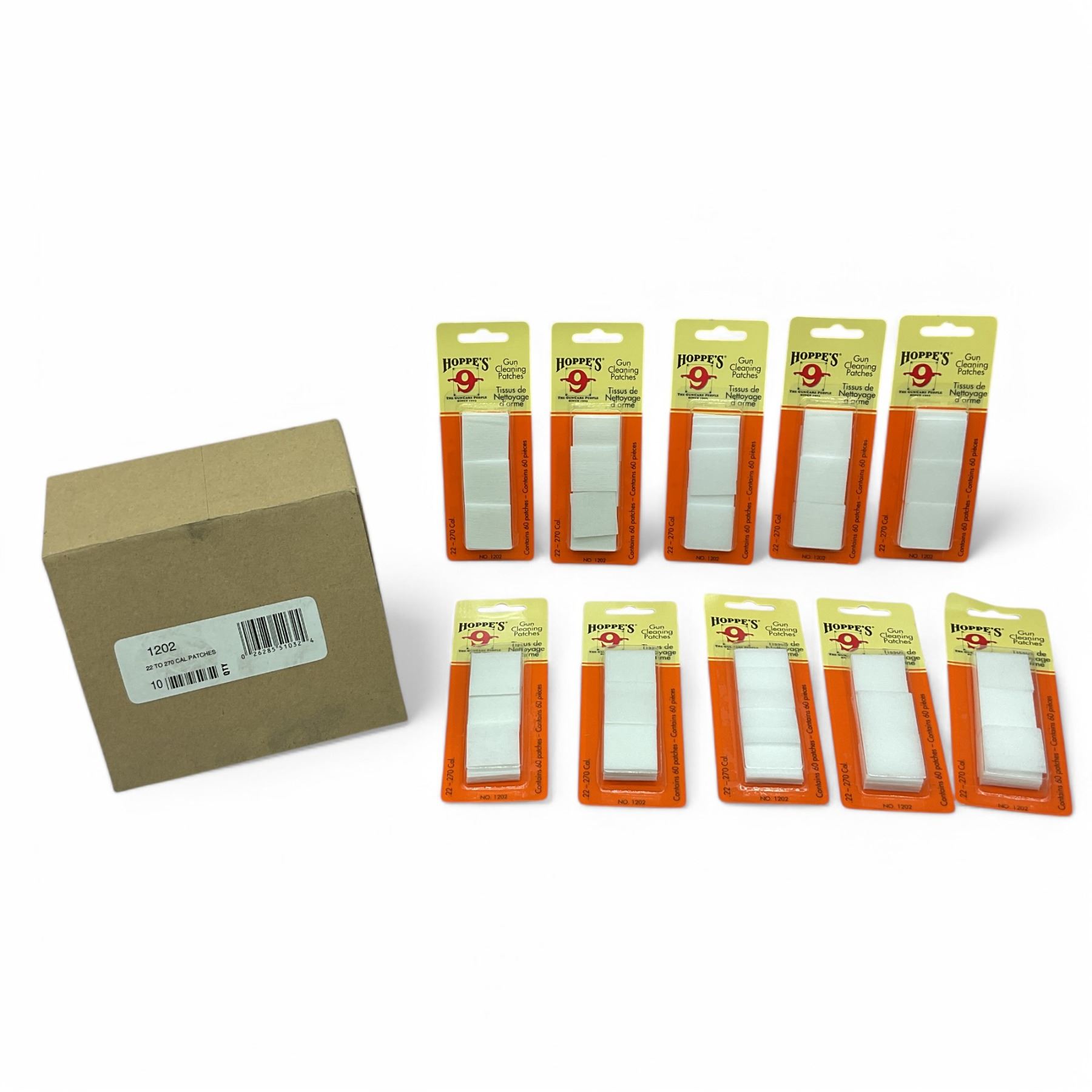 Lot 6720 Hoppe's .22 to .270 Caliber Gun Cleaning Patches, 60 Pack X 10 Qty