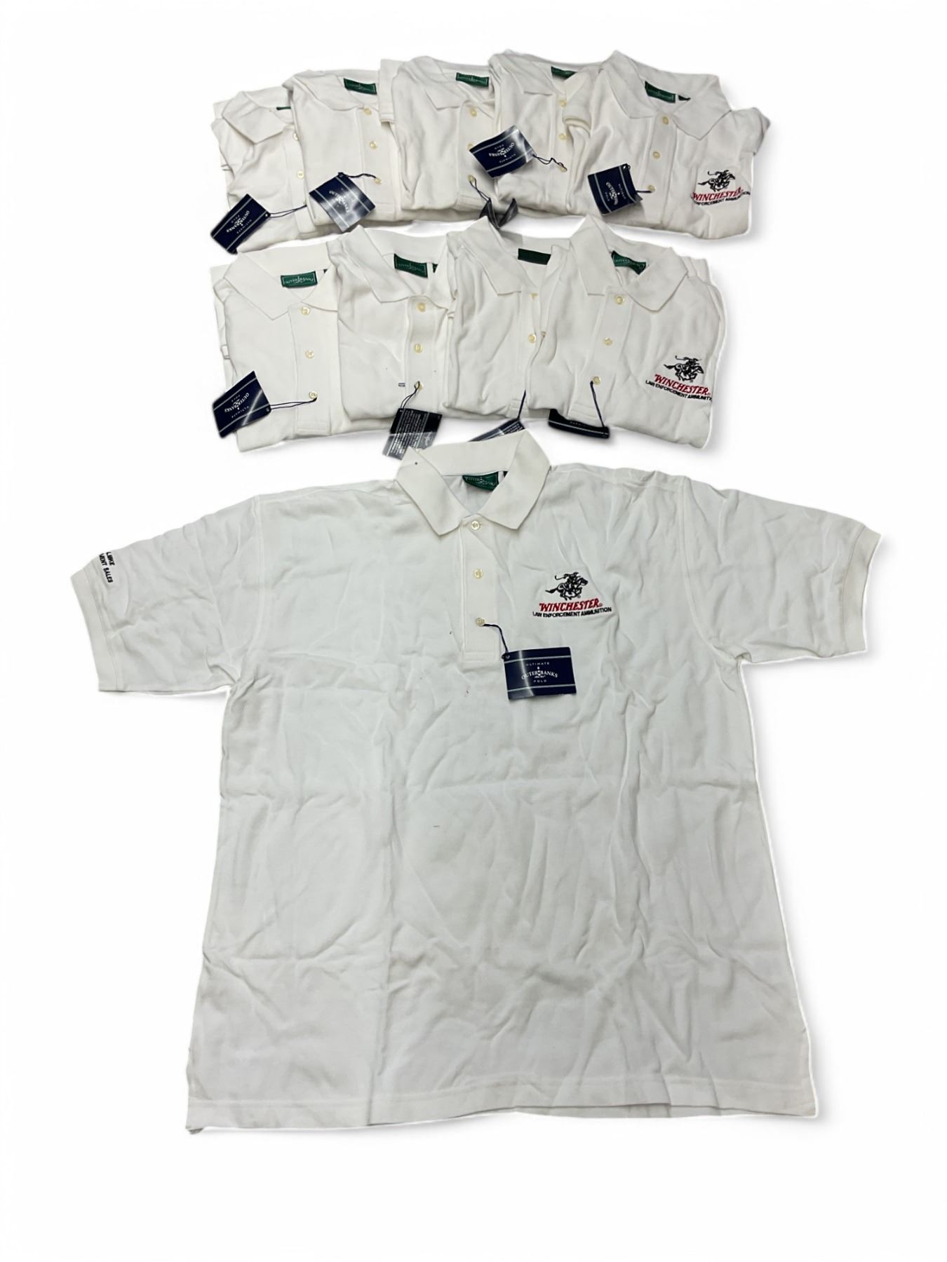 Lot 6871 Outer Banks Winchester Short Sleeve Polo Shirt, White, Size: Large X 10 Qty