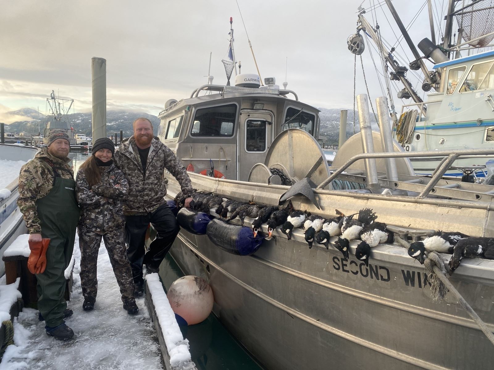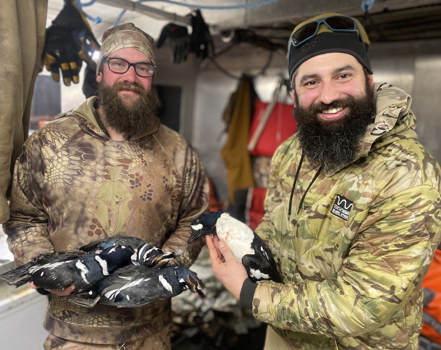On this trip each hunter will enjoy fully guided waterfowl hunting with an annual limit of 20 sea ducks with a variety of rare and sought after species such as harlequin, Barrow's goldeneye, greater scaup, surf scoter, white winged scoter, long-tailed duck, bufflehead and more. Also enjoy guided saltwater fishing for an unlimited number of pacific cod, variety of rockfish - trip limit of 6 per person (only 1 non-pelagic), and up to 1 lingcod.