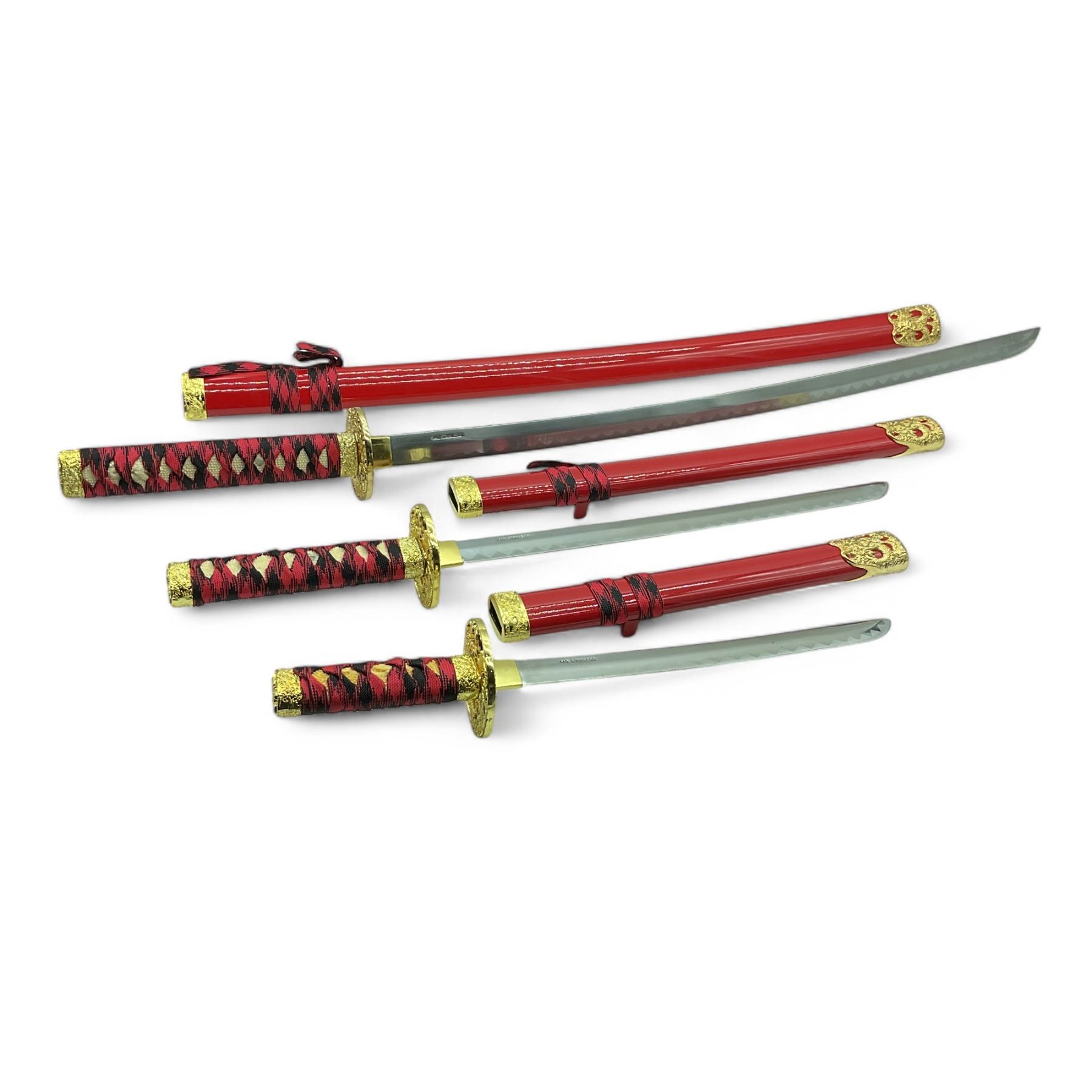 Stainless Steel Katana 3 Sword Set, 28.5" Blade, 16.5" Blade and 12.5" Blade