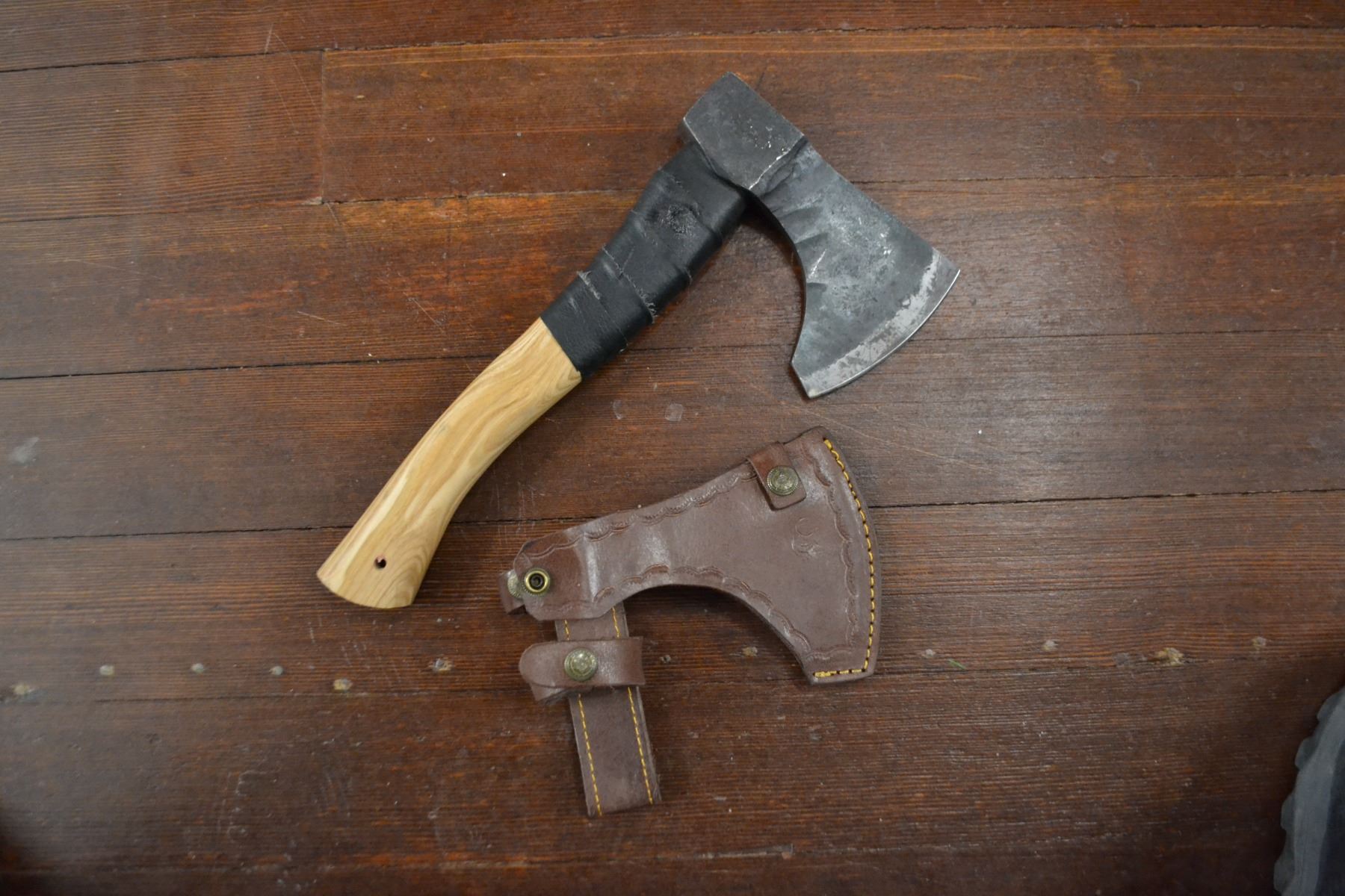 Lot 210 Hand Forged Hand Axe w/ Leather Sheath