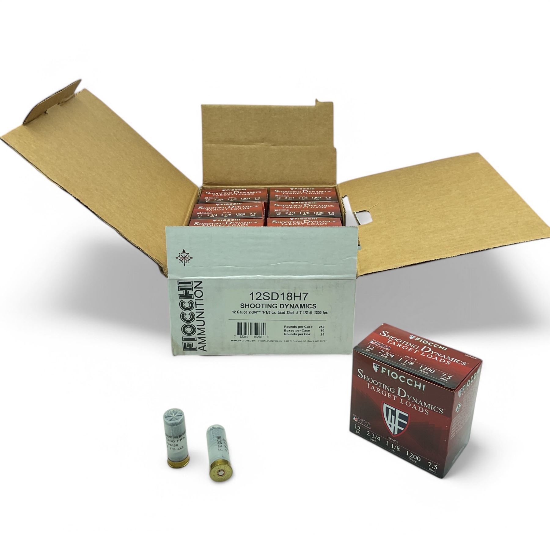 Lot 1925 Fiocchi Shooting Dynamics 12 Ga 2 3/4" Lead #7 1/2 Ammunition, 250 Round Case