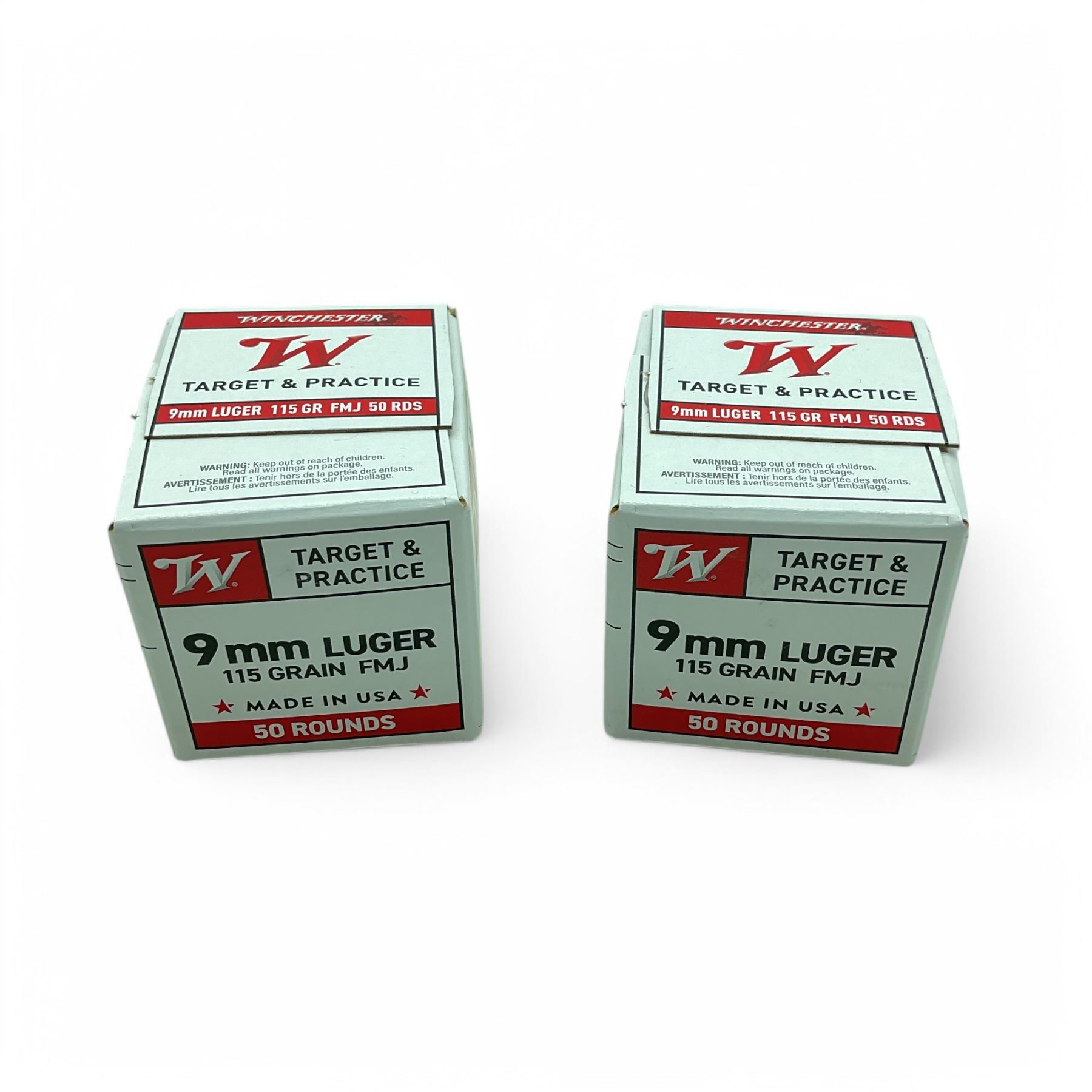 Lot 2086 Winchester Target and Practice 9 mm 115 Grain FMJ Ammunition, 100 Rounds
