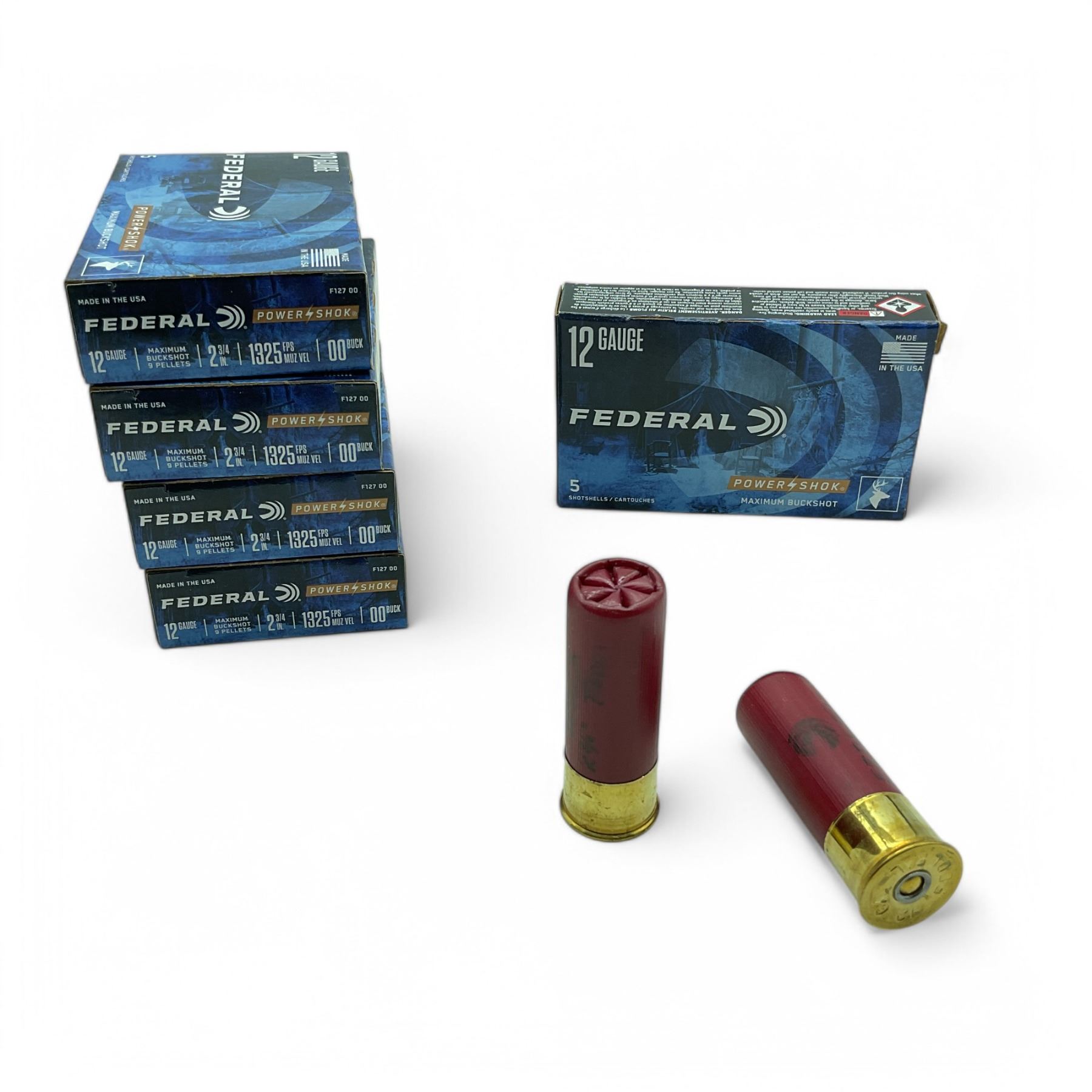 Lot 2127 Federal Power Shok 12 Ga 2 3/4" 00 Buck Ammunition, 25 Rounds