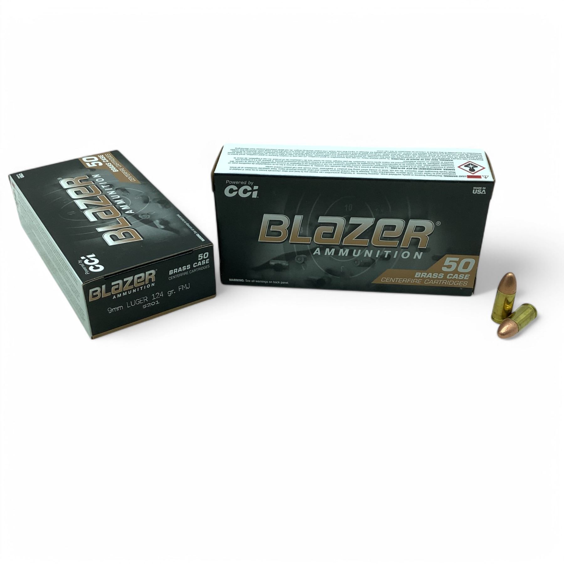 Lot 2220 CCI Blazer Brass 9 mm 124 Grain FMJ Ammunition, 100 Rounds