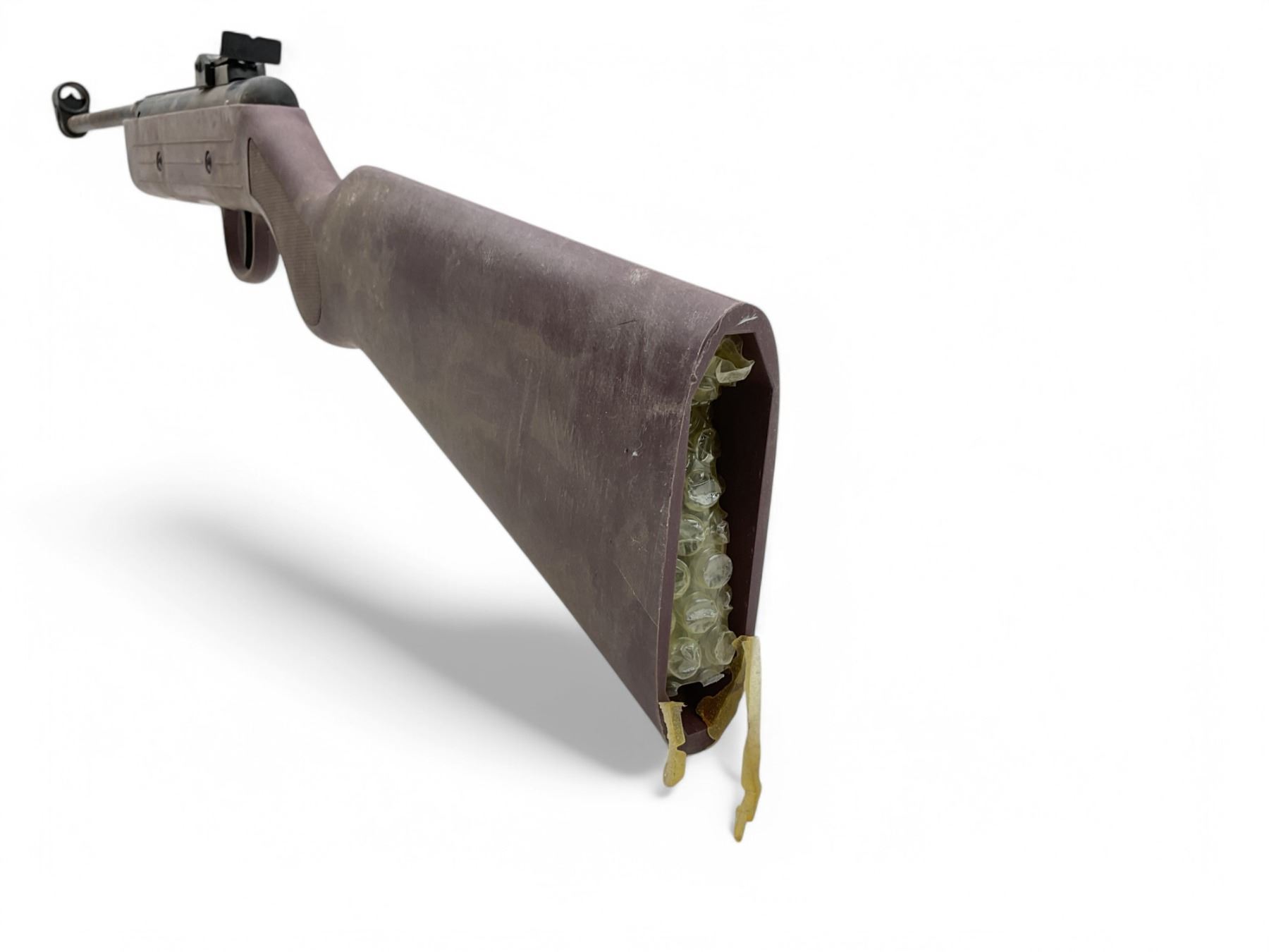 Kimar Break Action Single Shot Pellet Rifle .177 Caliber. Plastic stock; untested. No butt plate present. You must be over 18 years of age to purchase this item.