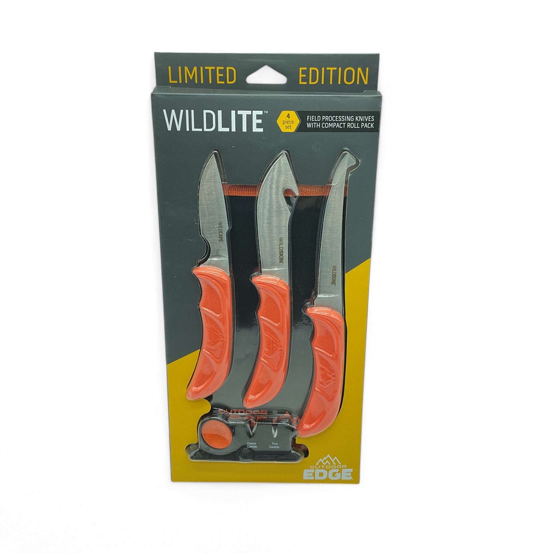 Outdoor Edge WildLite 4 Piece Field Processing Knife Set with Compact Roll Pack, New