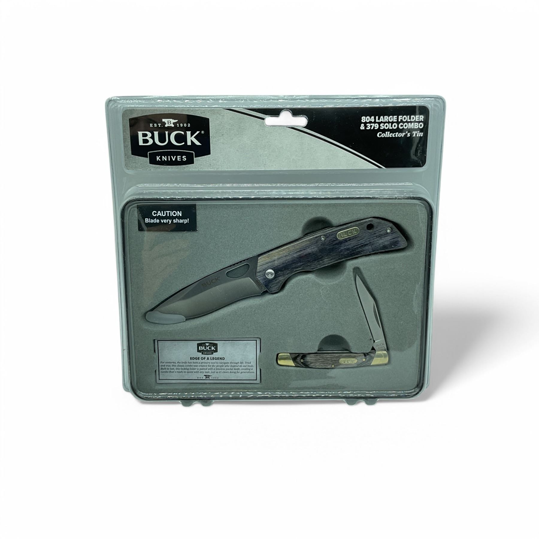 Buck Knives 804 Large Folder Knife and 379 Solo Knife Combo in Collectors Tin, New