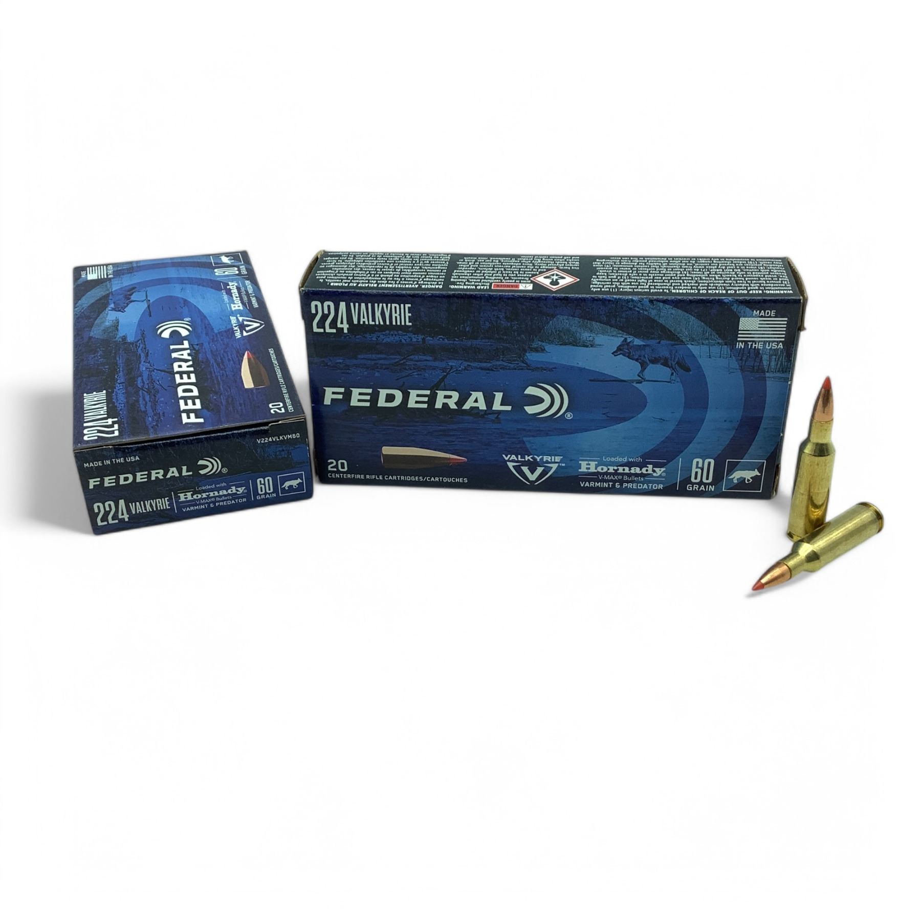 Federal (Hornady V-Max Bullets) Varmint and Predator 224 Valkyrie 60 Grain Ammunition, 40 Rounds