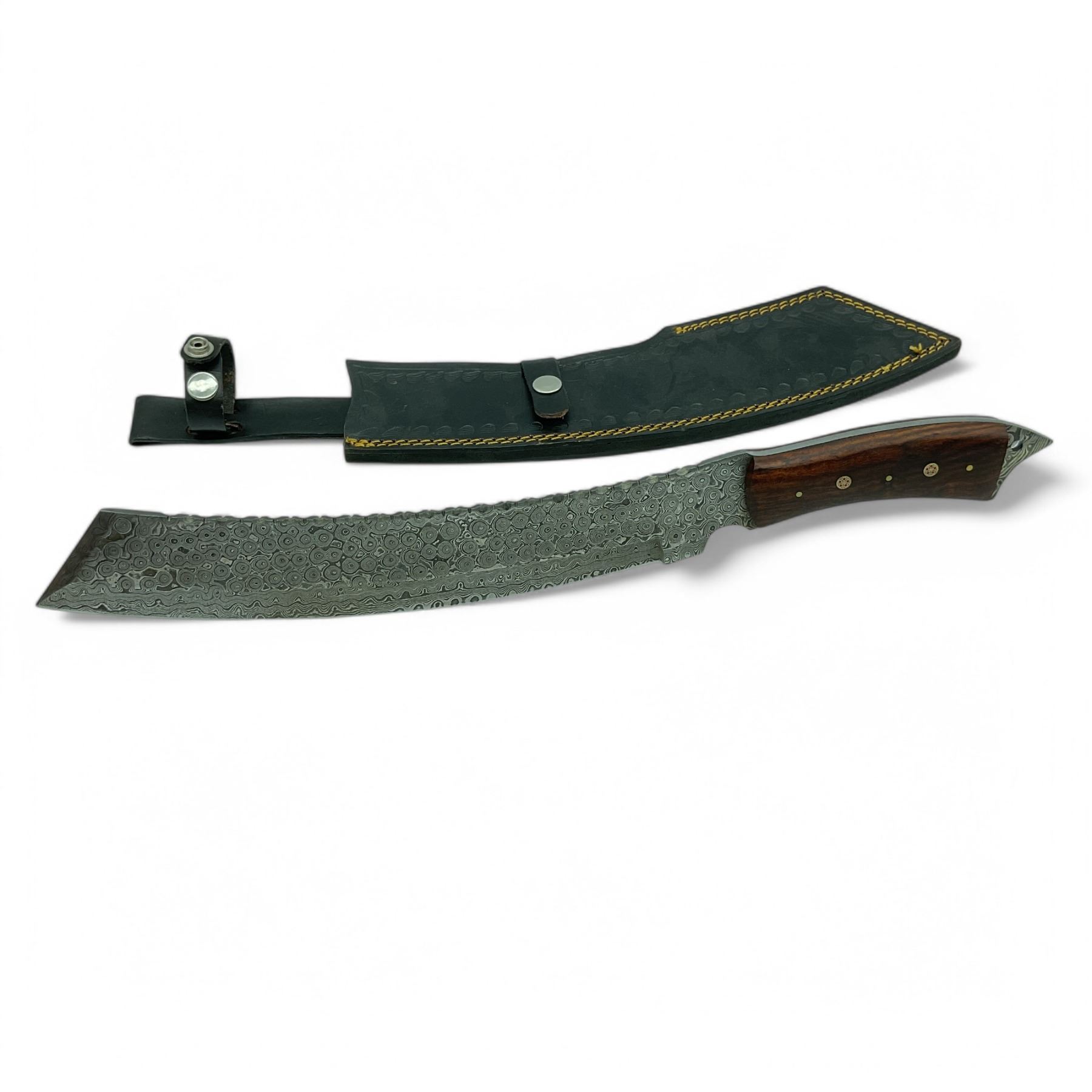Lot 106 Hand Forged Damascus 12" Blade with Wood Handle and Leather Sheath, New