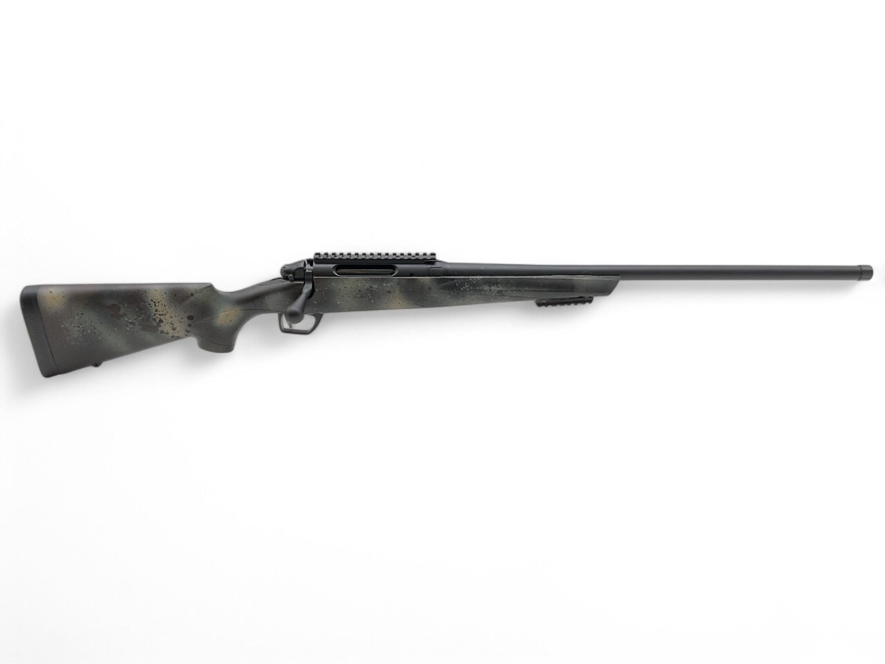 Remington Model 783 Bolt Action Rifle 308 Winchester 24" Threaded Heavy Barrel Camo. Comes with one detachable magazine. Receiver drilled and tapped with one piece rail installed. Adjustable trigger, rubber butt pad. Picatinny rail has been epoxied on bottom of stock. This is a non-restricted firearm.