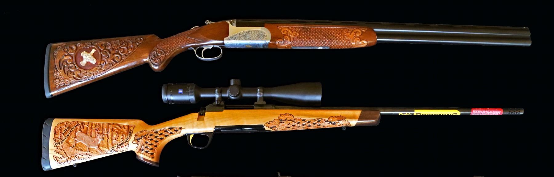 The presentation side of your gunstock will feature a wildlife scene of your choice, hand-carved with incredible detail.