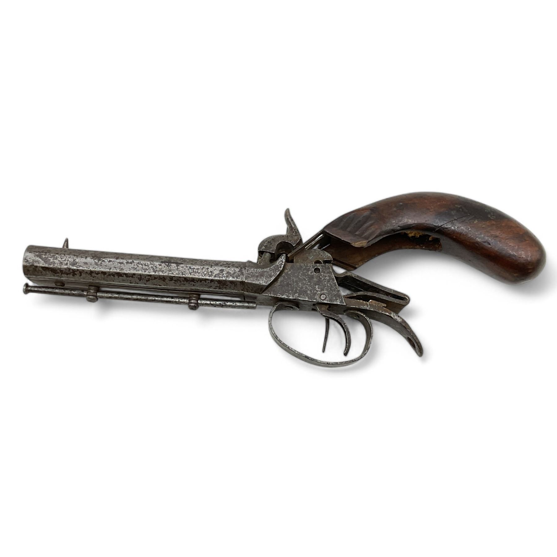 Lot 4006 Unknown Double Barrel Percussion Pistol 4" Barrels, Antique