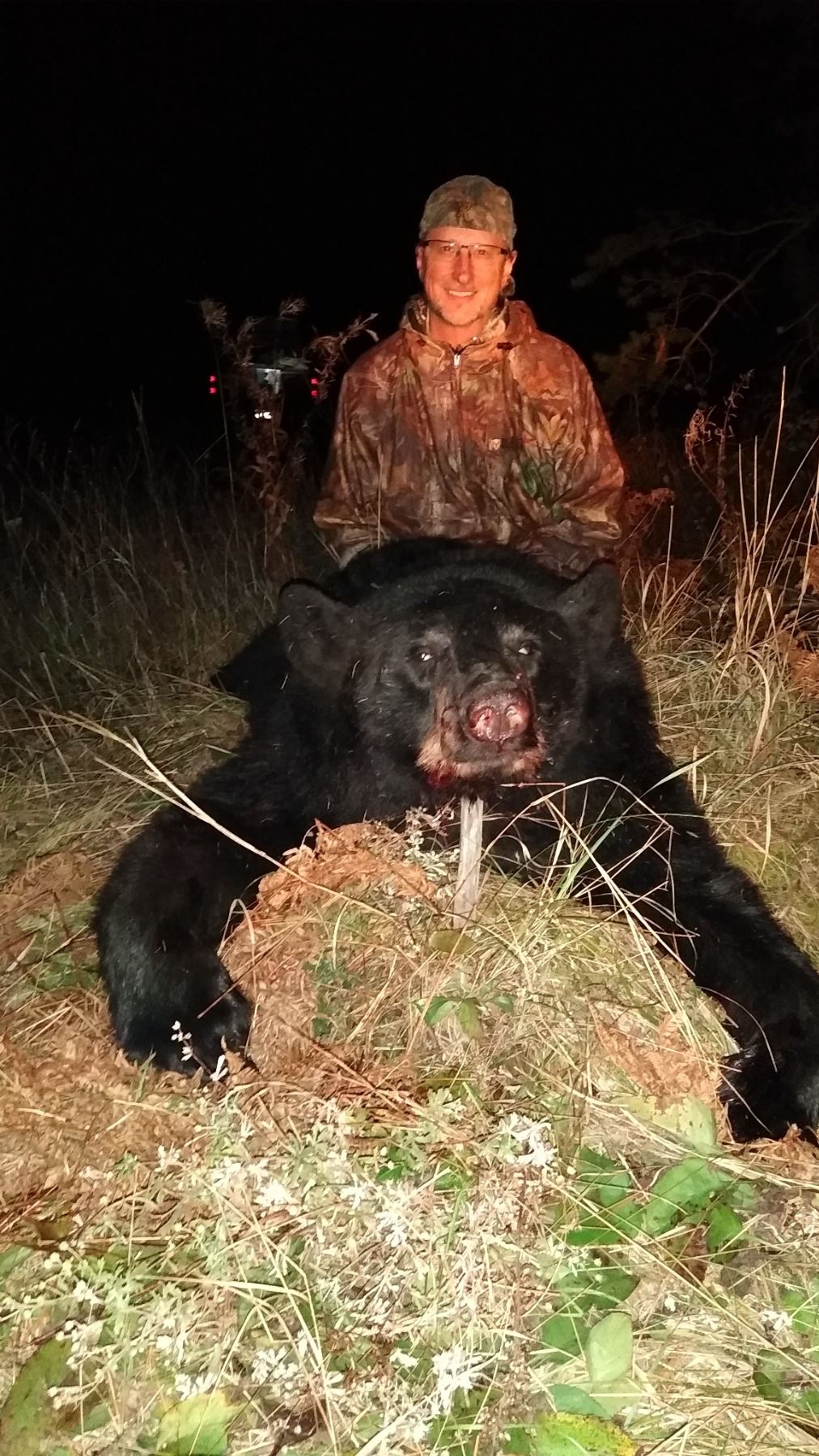 This is a 6-day Giant Minnesota Black Bear hunt for 1 hunter, with Tim Kresel who has personally harvested more big black bears than any other hunter in North America. This hunt can take place in the over the counter top secret no-quota areas with no tag drawing necessary, or in one of the tag permit areas recommended to you by Tim that generally take 2 to 3 years to draw. MN bear hunting season runs September 1 through the middle of October on the year you draw a permit. Upon a winning bid you will be advised as to which bear hunt zones to apply for. What’s his secret? Tim has a highly guarded secret system to beat big, smart bears which he has developed over a 30 year obsession. Numerous guides and hunters claim that it is not possible for a hunter to harvest a big bear every year. Tim has proven them all wrong year after year by harvesting 15 big bears between 400 and nearly 700 pounds plus many more between 300 and 400 pounds. Tim also has video taped and or witnessed hundreds more. All in the state of Minnesota! Now Tim is offering a limited number of hunts to hardcore big bear hunters. He is NOT a 150 pound bear factory. He is a BIG BEAR SPECIALIST! Tim Kresel has been very successful at guiding his clients to some GIANT bears! Most are black phase but he typically gets 10% - 20% chocolate phase. Guns, bows, or crossbows can be used on this hunt. Most hunters will get an opportunity to harvest a bear in 1 to 3 hunting days on an average year. You will hunt multiple Big Bear setups with multiple Big Bear activity. The deadline for Minnesota bear applications is May 1, 2025 . This hunt can be taken during the 2025 bear hunting season or beyond, NO EXPIRATION DATE! This hunt can be upgraded to take one bear in the permit areas and one bear in the no-quota zone, depending on availability. Lodging will be in local motels or campgrounds at the hunter's expense. A hunt observer is NOT recommended in order to reduce scent and motion. Arrival and departure point may vary depending on natural foods. Booth 72 at MN SCI Expo.This Donation has a Reserve. Minnesota SCI thanks Tim Kresel and Minnesota Big Bear Specialist for this donation!