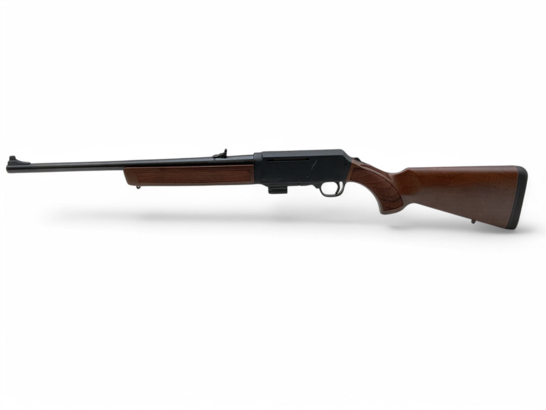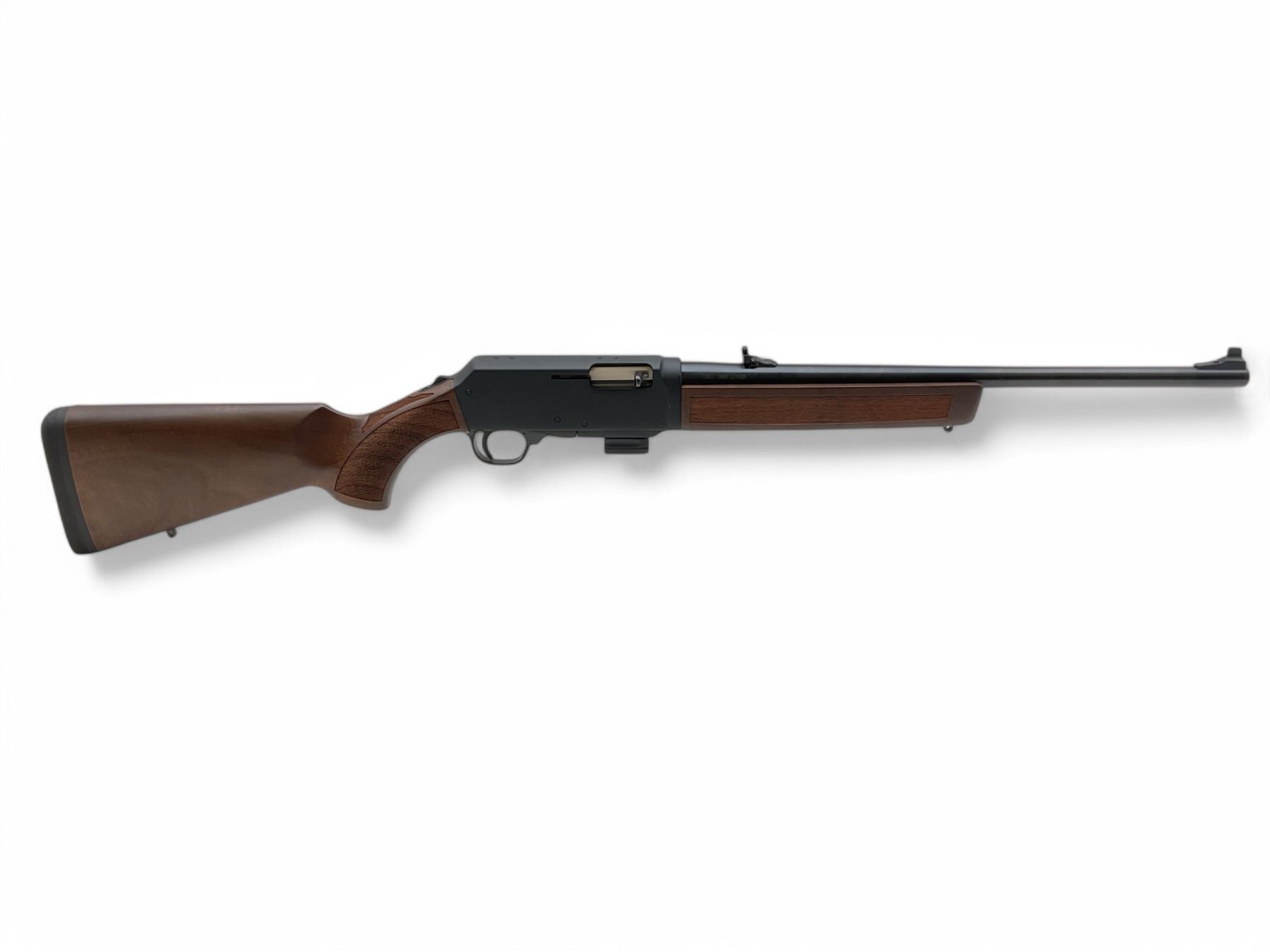 Henry Homesteader Semi Auto Rifle 9MM 18.6" Barrel Wood Stock, New. Comes with 2 detachable magazines. Fixed front sight, adjustable rear sight. Also includes Glock magwell insert. This is a non-restricted firearm.