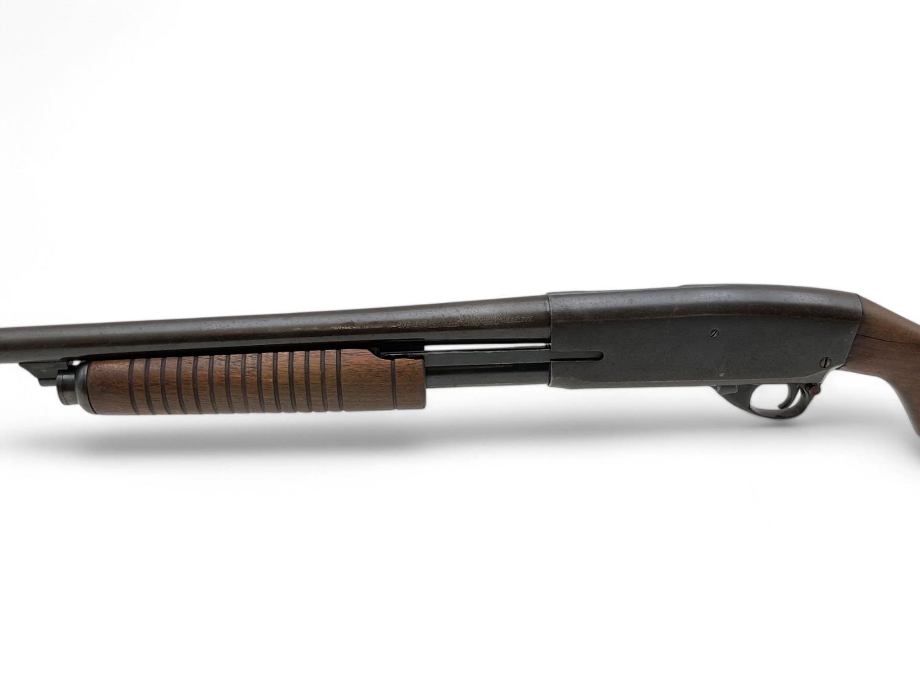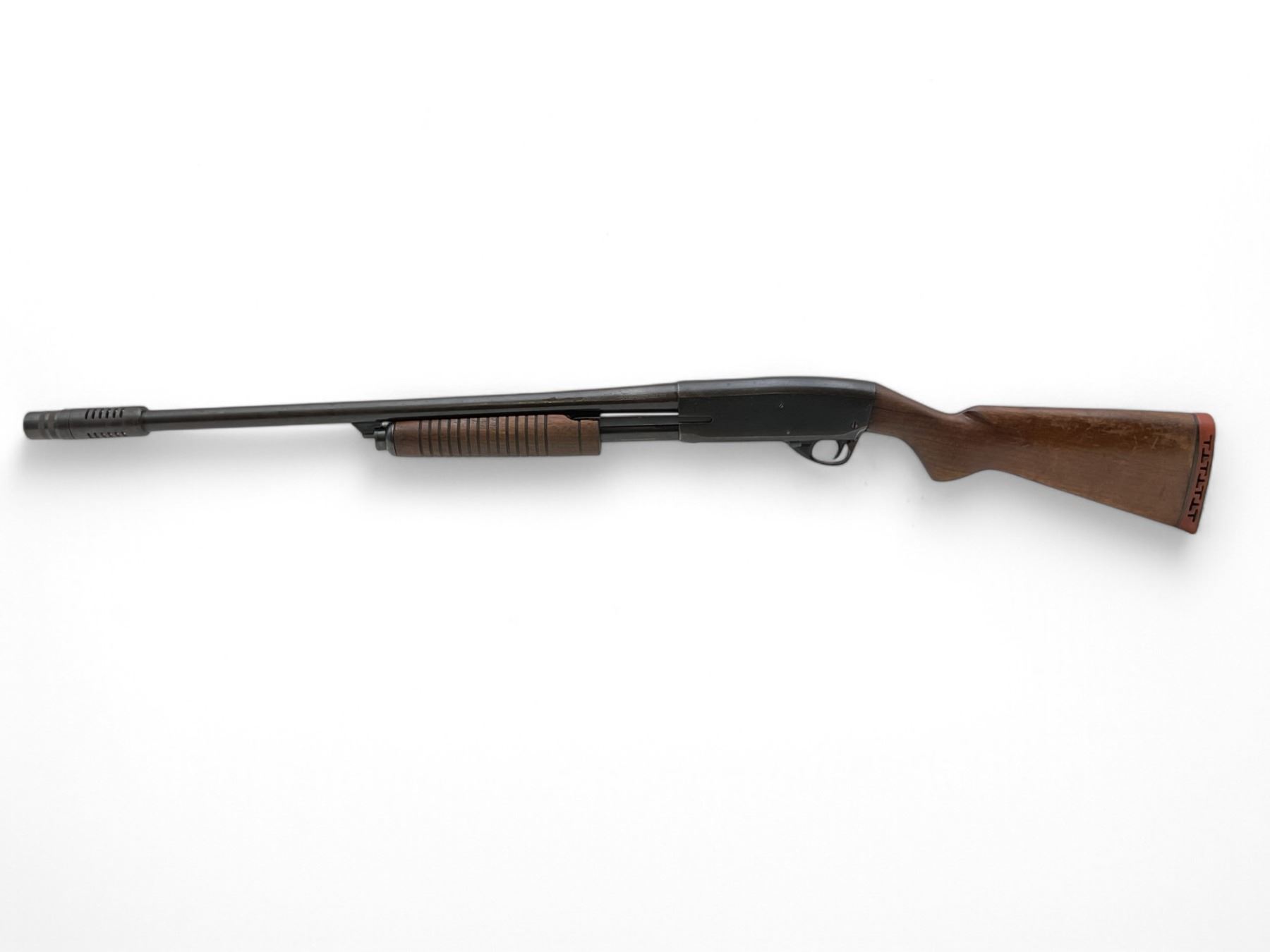 Stevens Model 77E Pump Action Shotgun 12Ga 2.75" Chamber 22" Barrel W/ Savage Super-Choke Wood Stock. Bead sight; Savage adjustable choke. Rear stock is cracked behind receiver. This is a non-restricted firearm.