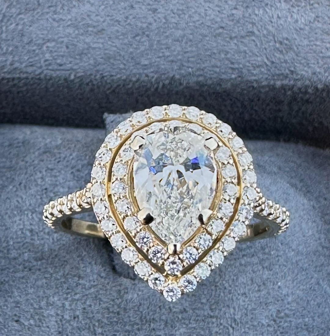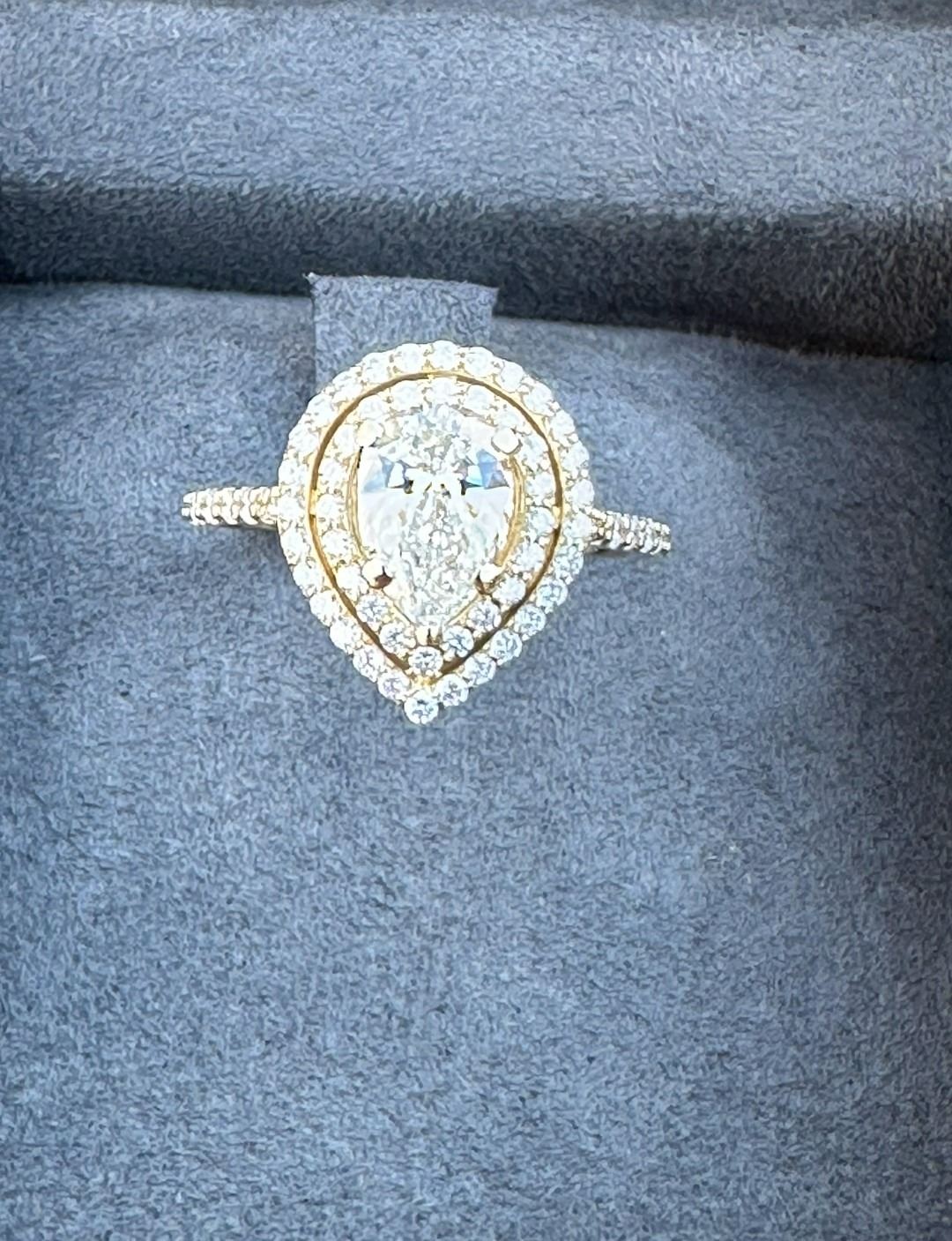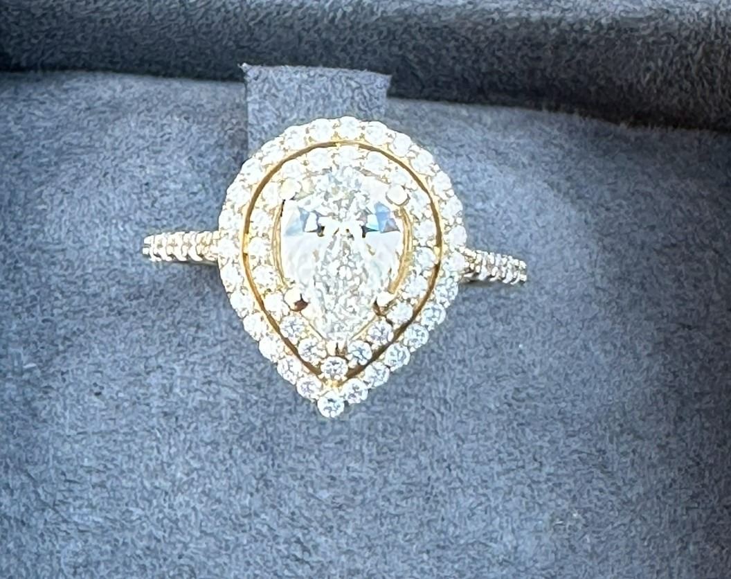 *This Ring features a center 1.00 carat pear shape diamond exhibiting a color and clarity of I/VS2