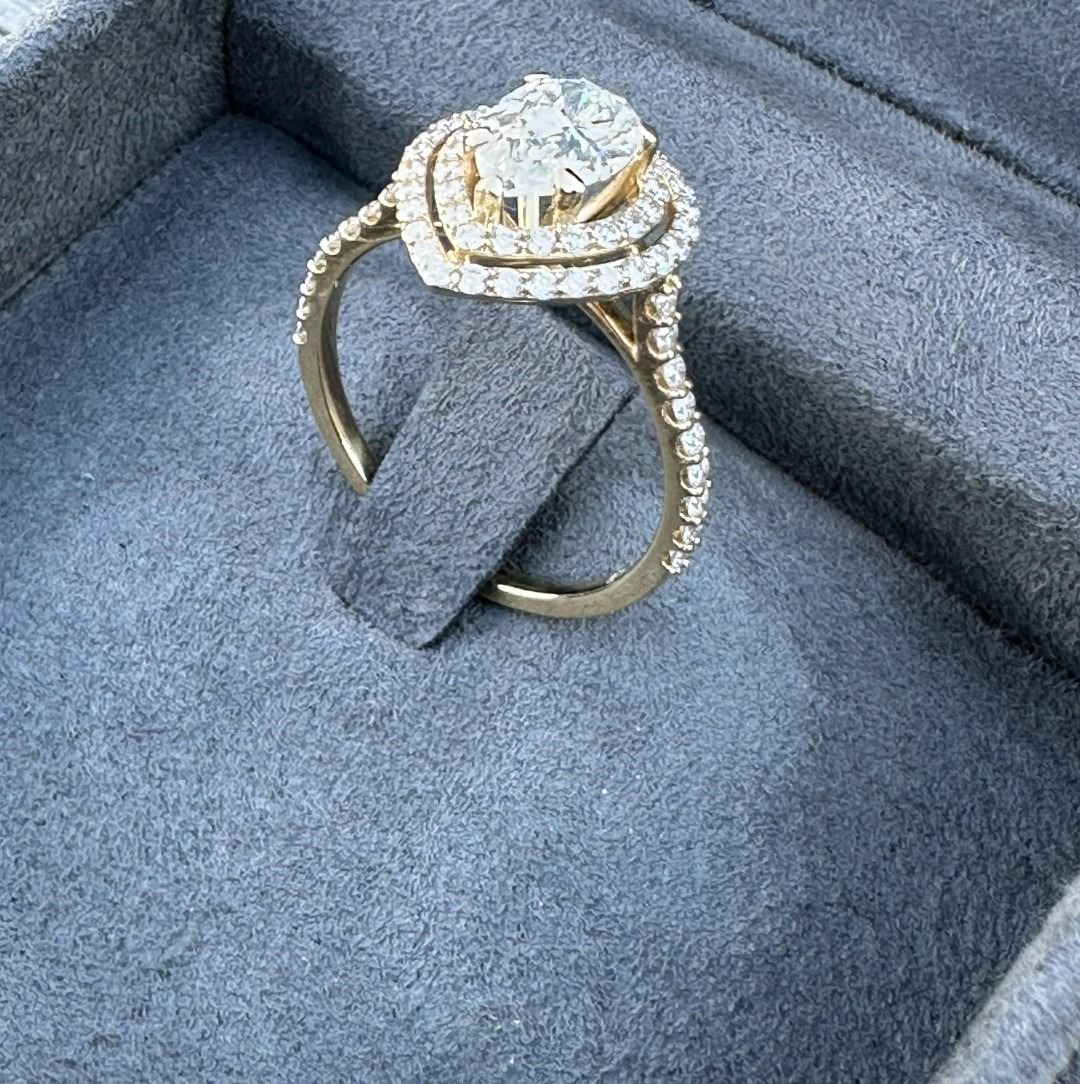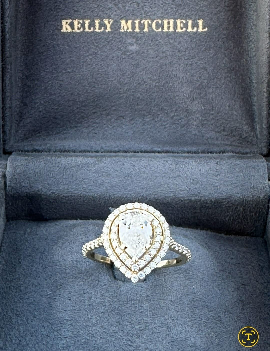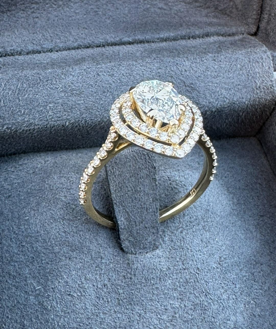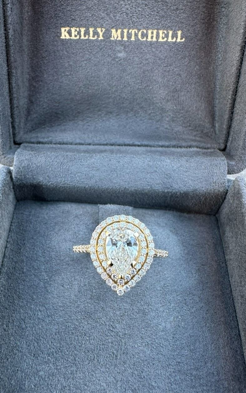 *The diamond is set in a double diamond halo style ring featuring .65 carats of round brilliant diamond.