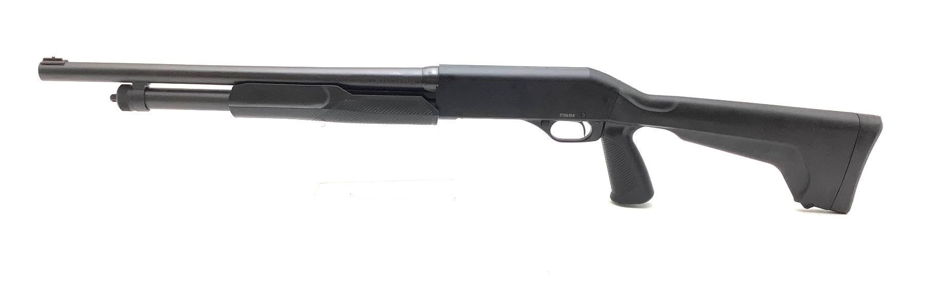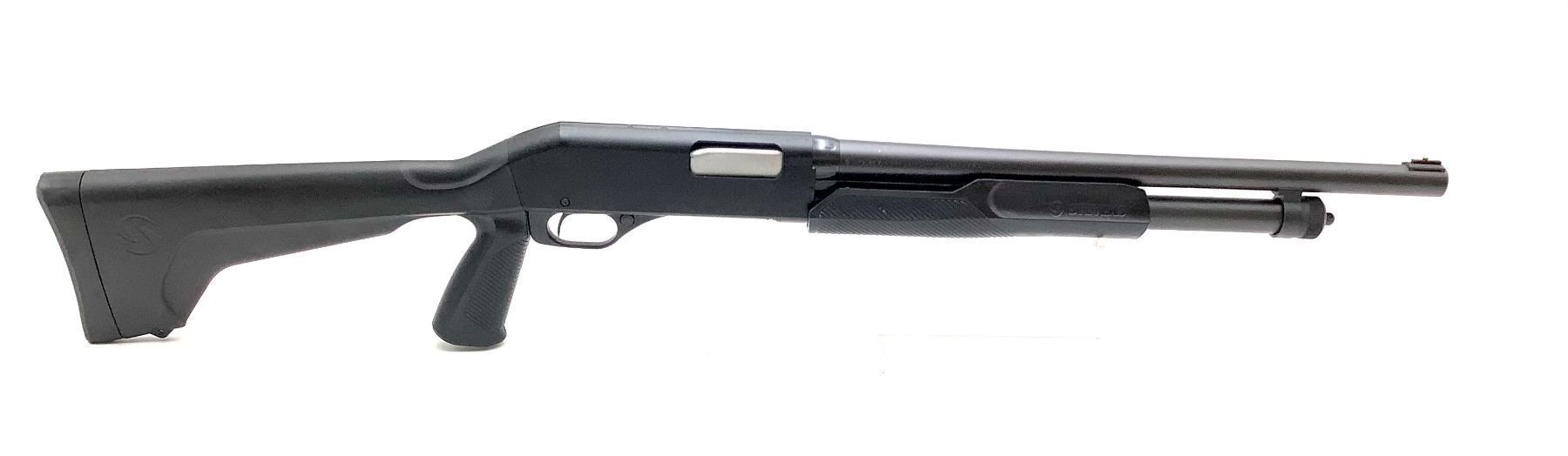 Stevens 320 Pump Action Shotgun 12Ga 3" Chamber 18.5" Barrel Black Synthetic Stock, New. Fixed choke, bead sight. This is a non-restricted firearm.