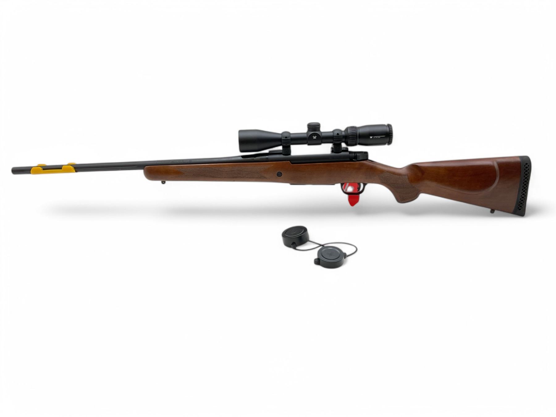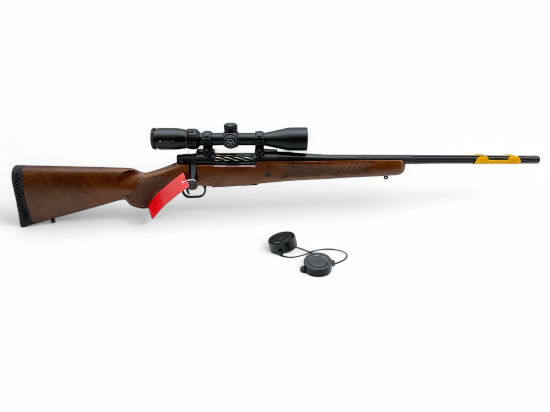 Mossberg Patriot Bolt Action Rifle 270 Winchester 22" Barrel Wood Stock With 3-9x40 Vortex Scope, New. Fluted barrel; receiver drilled and tapped with bases installed. Rubber butt pad; adjustable trigger. This is a non-restricted firearm.