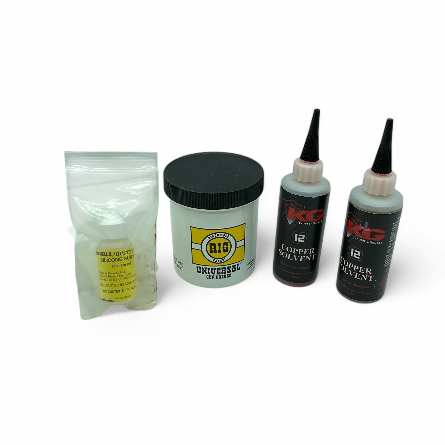KG Copper Solvent 4 Oz X 2, Silicone Gun Oil 1 Oz, Universal Gun Grease 12 Oz