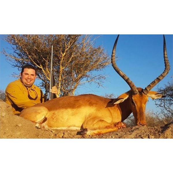Four of you will be hunting private ranches for a large variety of plains game. Hunt includes deluxe lodging at a premier lodge with en-suite bathrooms, five-star meals, beverages, daily laundry service and one professional hunter for every 2 hunters. Hunt4800 includes trophyfees for one trophy Gemsbuck for a total of 4 animals. Hunters can upgrade the hunt to up to 10 days for $220 per person per additional day. Hunters can shoot a large variety of plains game including Kudu, wildebeest and many other  species for additional trophy fees. Air fare to and from Johannesburg and Sishen (Northern Cape), tips, dip and packing fees, gun and hunting licenses not included.