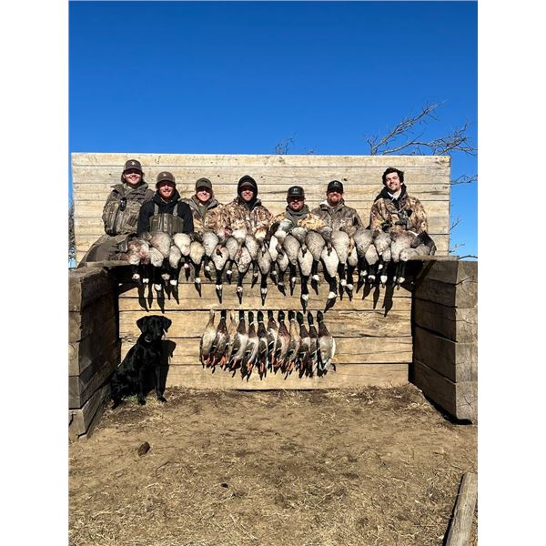 You will enjoy three days of guided duck and goose hunting on thousands of acres of private land located in Southeastern Kansas. You will hunt from comfortable pit and panel blinds. Kansas has some of the best mallard and Canada goose hunting in the country. Mallard limits of 5 per day and Canada Goose limits of 6 per day. You can book extra days and hunters at the regular rate of $650 per day per person. Lodging, meals and guided hunt included. Hunt good for November of 2025 (Retail Value $3,900)