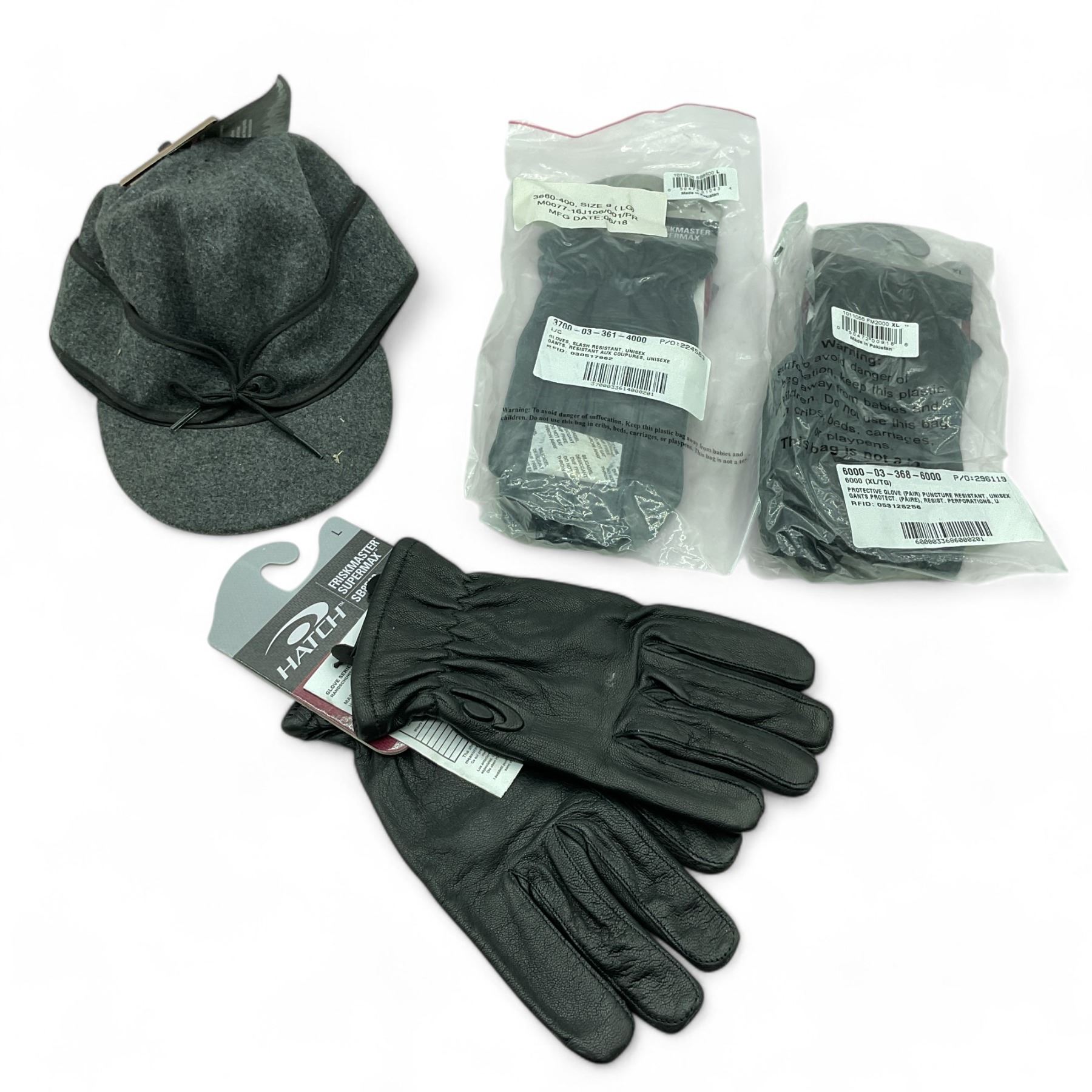 Lot 2843 Stormy Kromer 7 1/8" Hat, Hatch Friskmaster Supermax Gloves, Lg X 2 and Friskmaster Gloves XLg