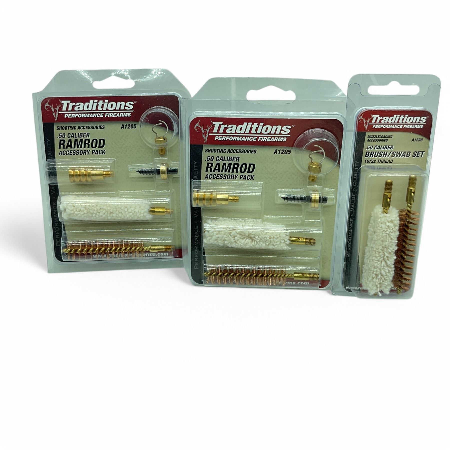 Traditions 50 Cal Muzzleloading Ramrod Accessory Pack X 2 and Swab/ Brush Set, New
