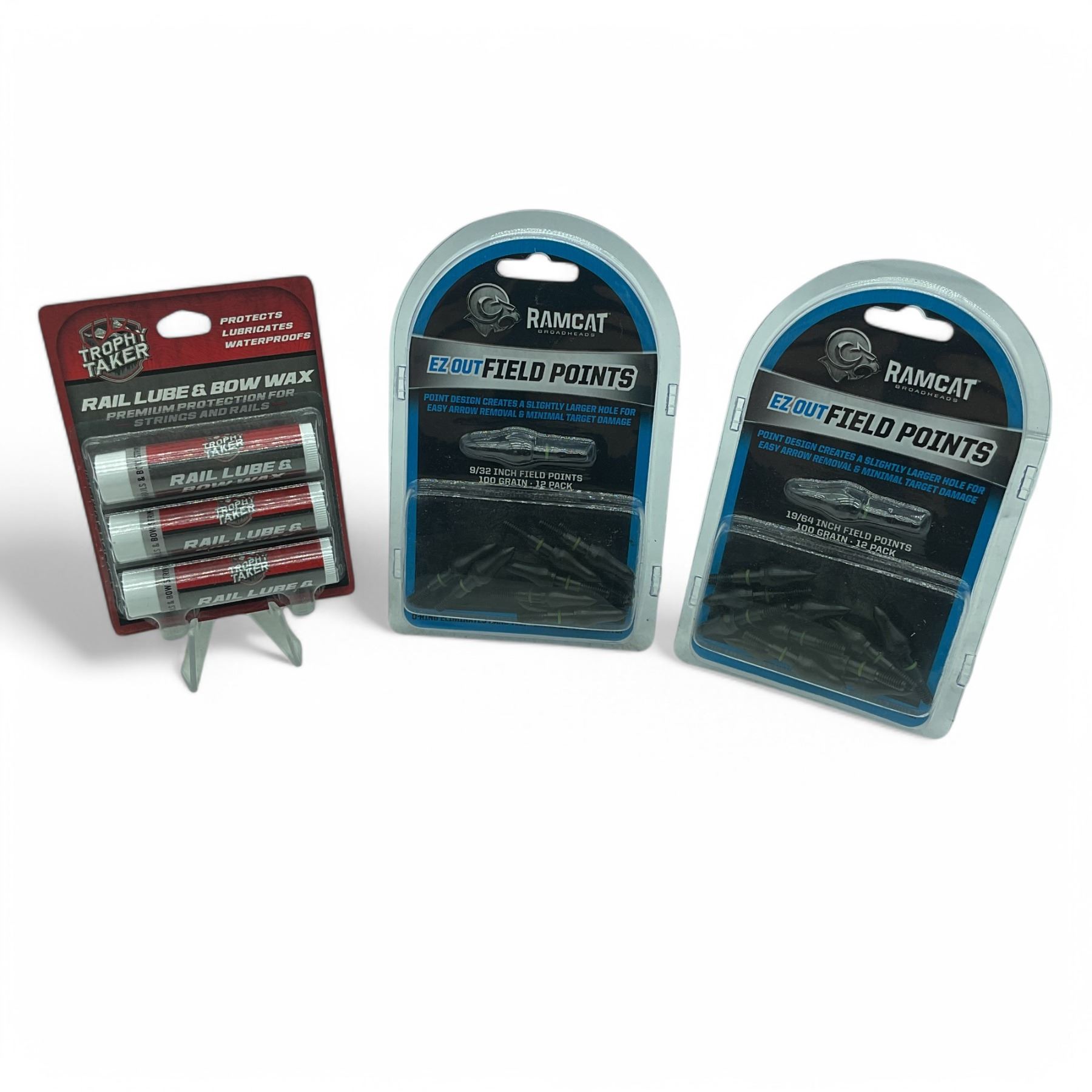 Ramcat EZ Out 100 Grain Field Points 12 Pk X 2 Qty, Rail Lube and Bow Wax 3 Pk, New