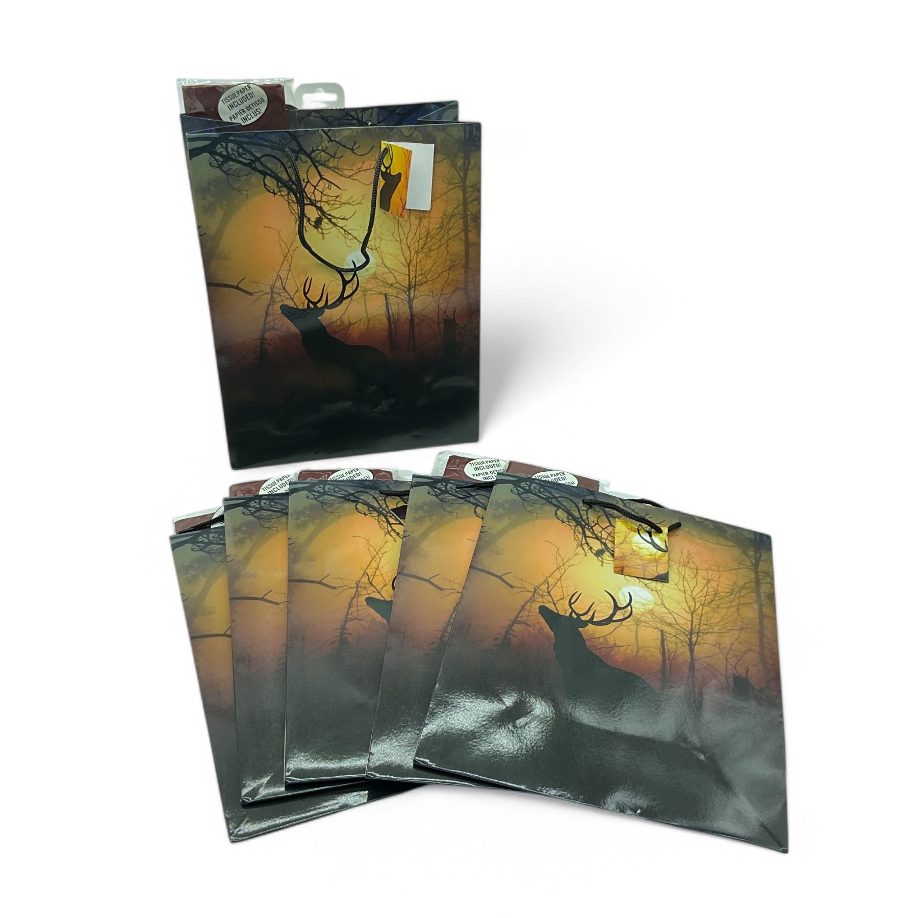 Lot 2966 River's Edge Deer Silhouette Gift Bags with Tissue Paper, 13" X 10" 6 Qty
