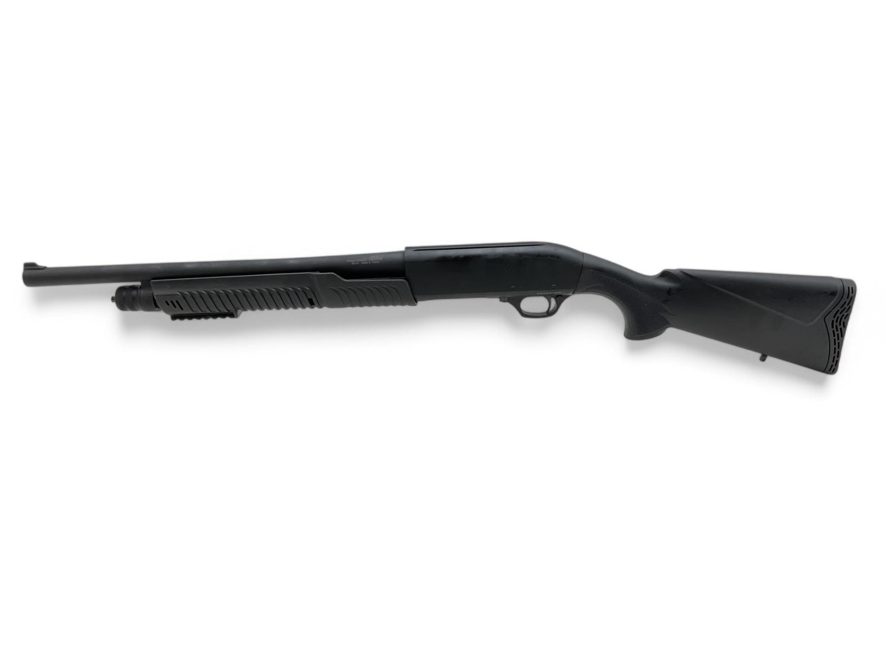 Charles Daly Model 301 Pump Action Shotgun 12Ga 3" Chamber 18.5" Barrel Black Synthetic Stock. Fixed front sight; comes with a removable choke. This is a non-restricted firearm.