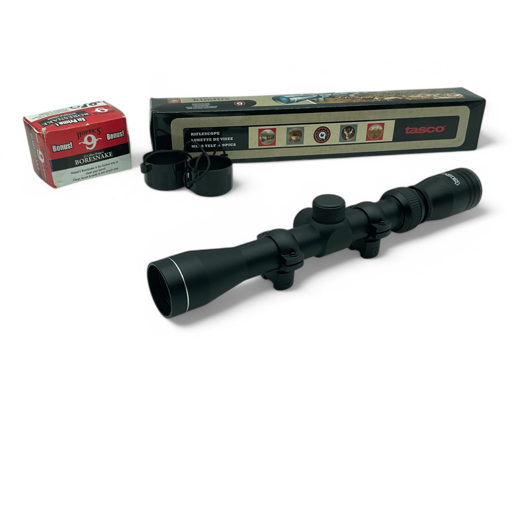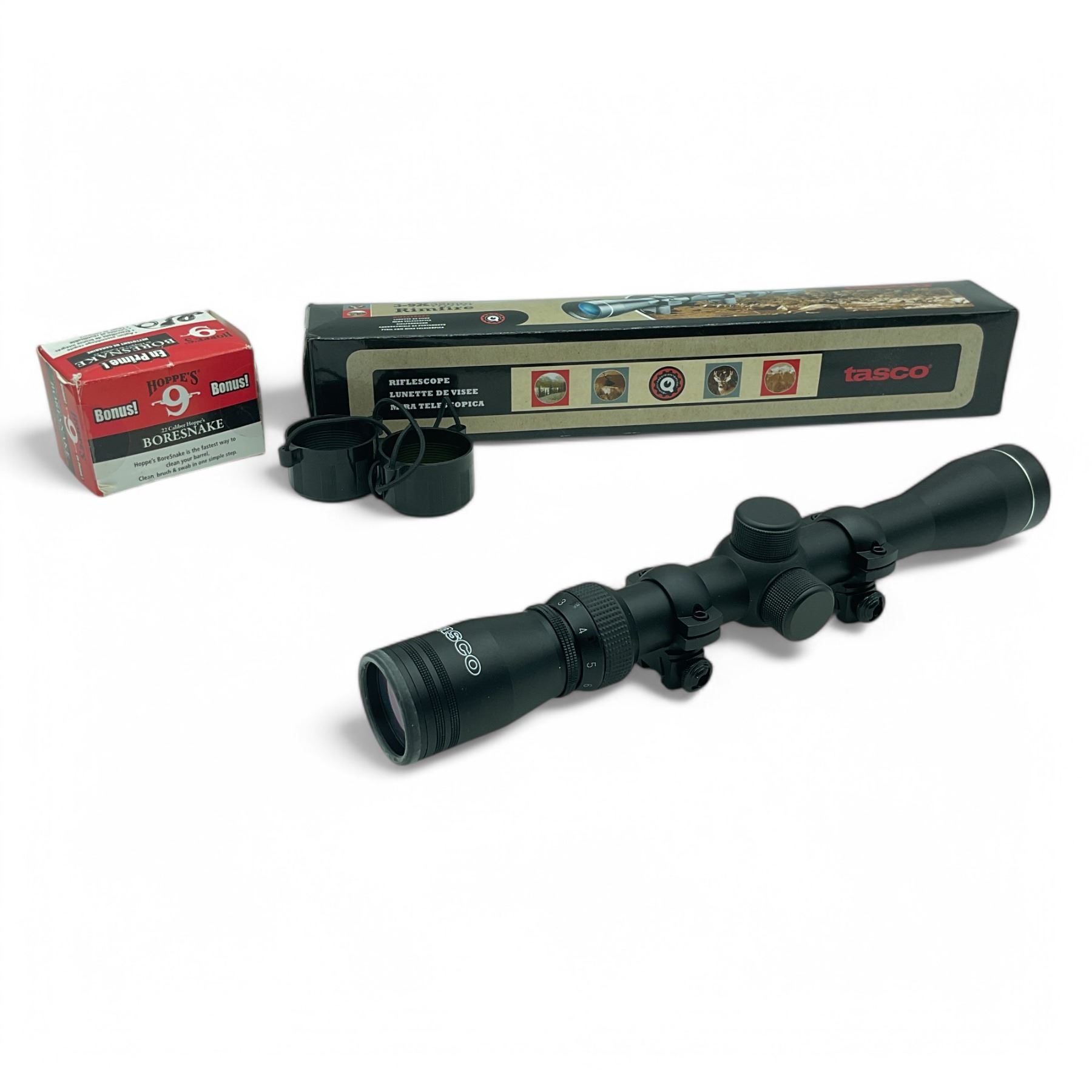 Lot 3021 Tasco 3 - 9X 32 mm Rimfire Rifle Scope and Hoppe's Boresnake for 22 Cal Rifle