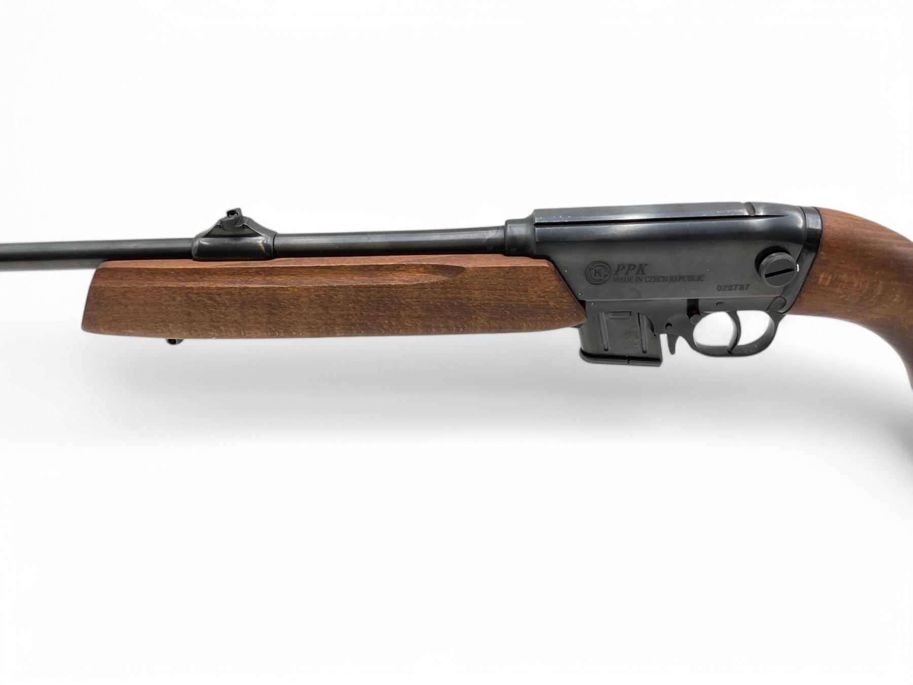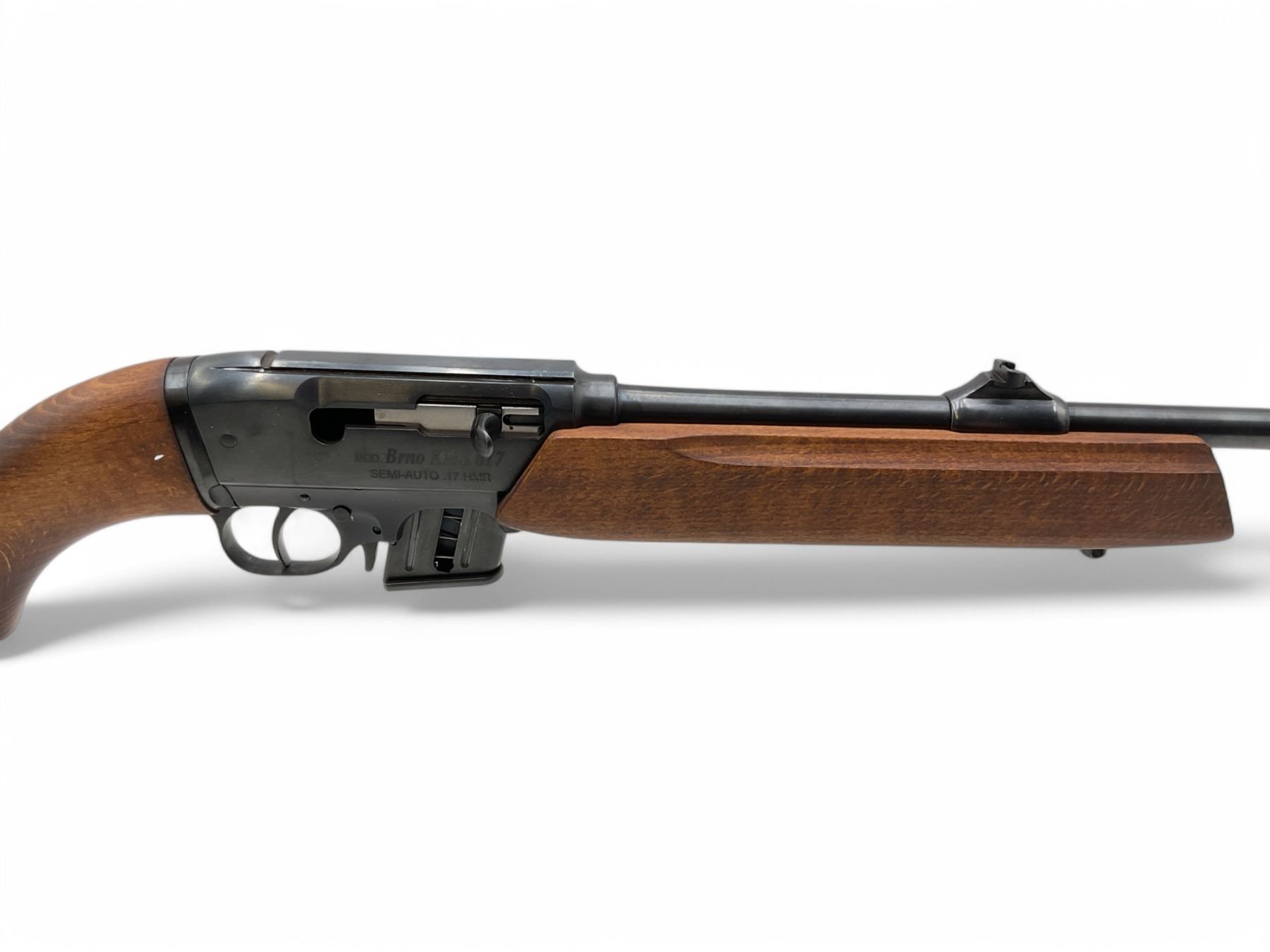 PPK Model Brno KMS 617 Semi Auto Rifle 17 HMR 20" Barrel Wood Stock. Comes with one detachable magazine; factory open sights. Consignor indicates this gun has intermittent fail to fire and fail to feed issues. This is a non-restricted firearm.