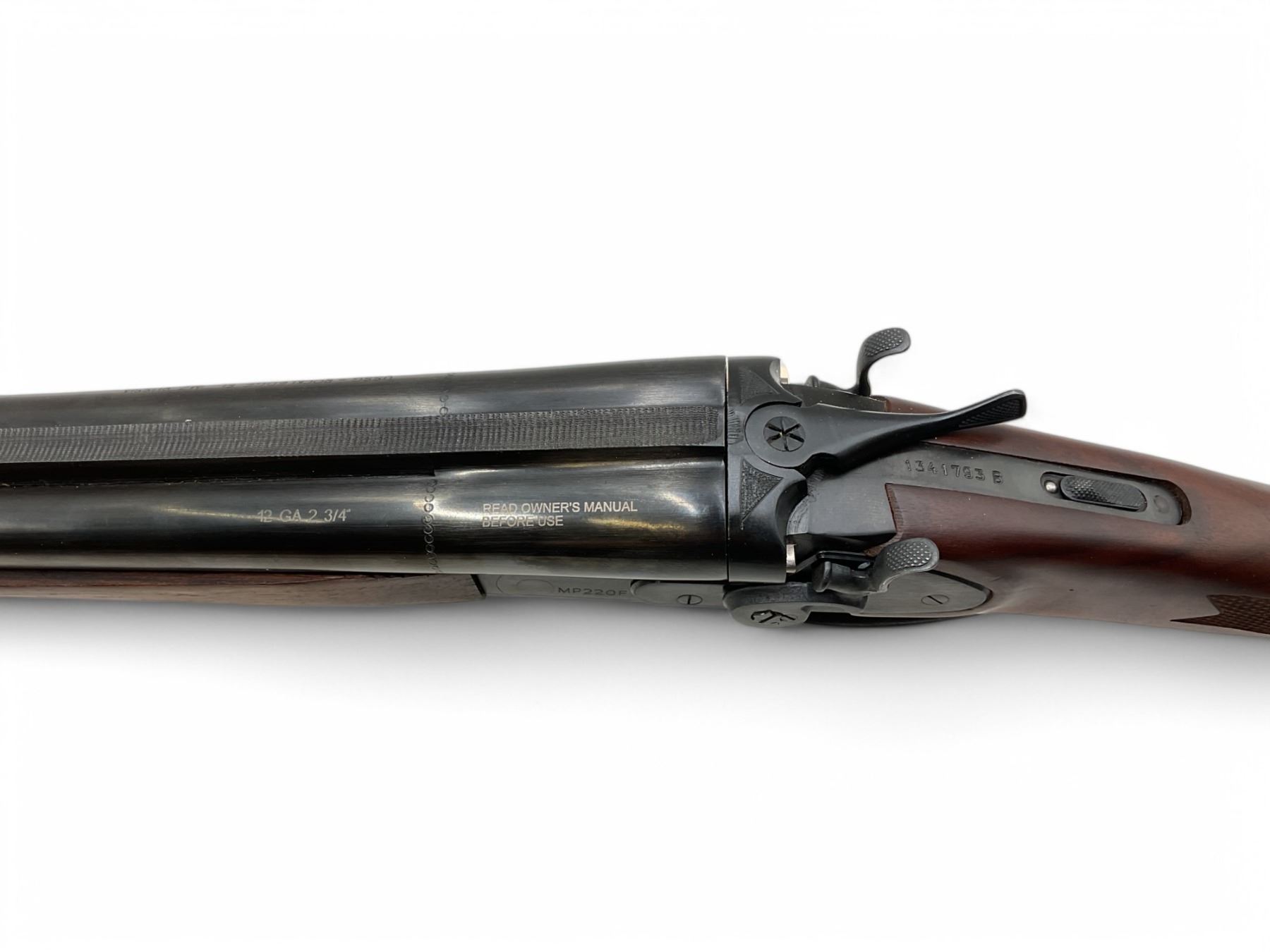 Baikal MP-43 Side By Side Shotgun 12Ga 2.75" Chambers 20" Barrels Wood Stock. Bead sight; each barrel has a removable choke. This is a non-restricted firearm.