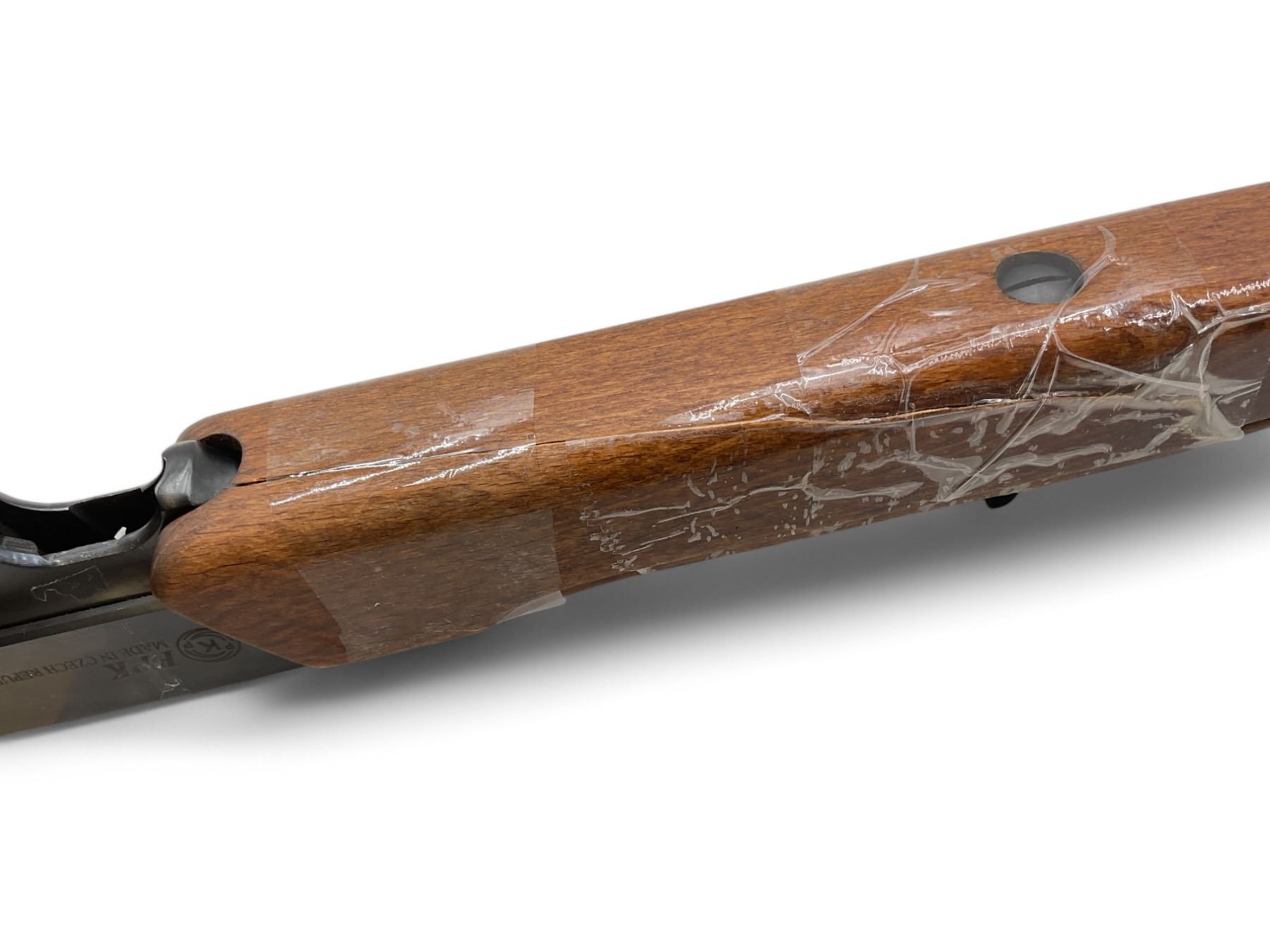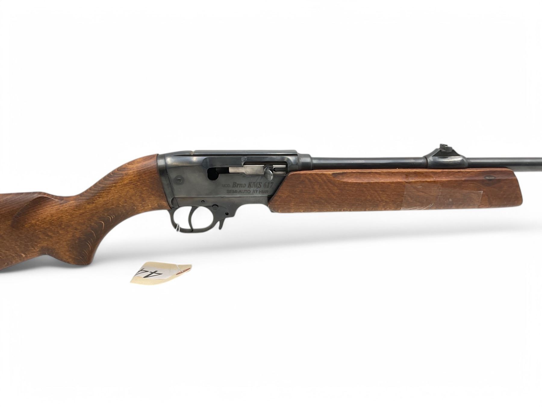 PPK Model Brno KMS 617 Semi Auto Rifle 17 HMR 20" Barrel Wood Stock. No magazine present. Factory open sights. Wood forend is cracked in half. Consignor indicates gun has occasional fail to ejects. This is a non-restricted firearm.
