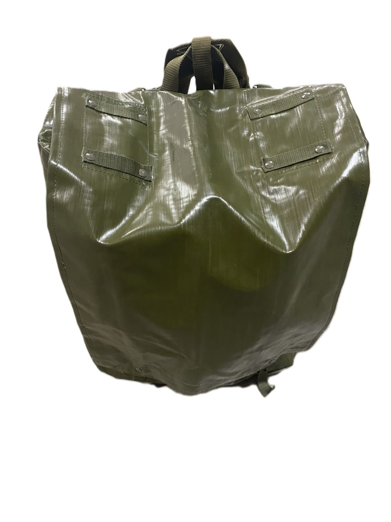Great water resistant bag from the Czech Army. This is a good general purpose bag that will keep out the rain. A large main compartment and 2 smaller ones will fit all of your gear. Two narrow shoulder straps are attached to the pack with spring hook attachments and comes with wider shoulder strap harness. These may have some marks or fading from storage but are in very good condition. Keep your kit dry and slap it in one of these.