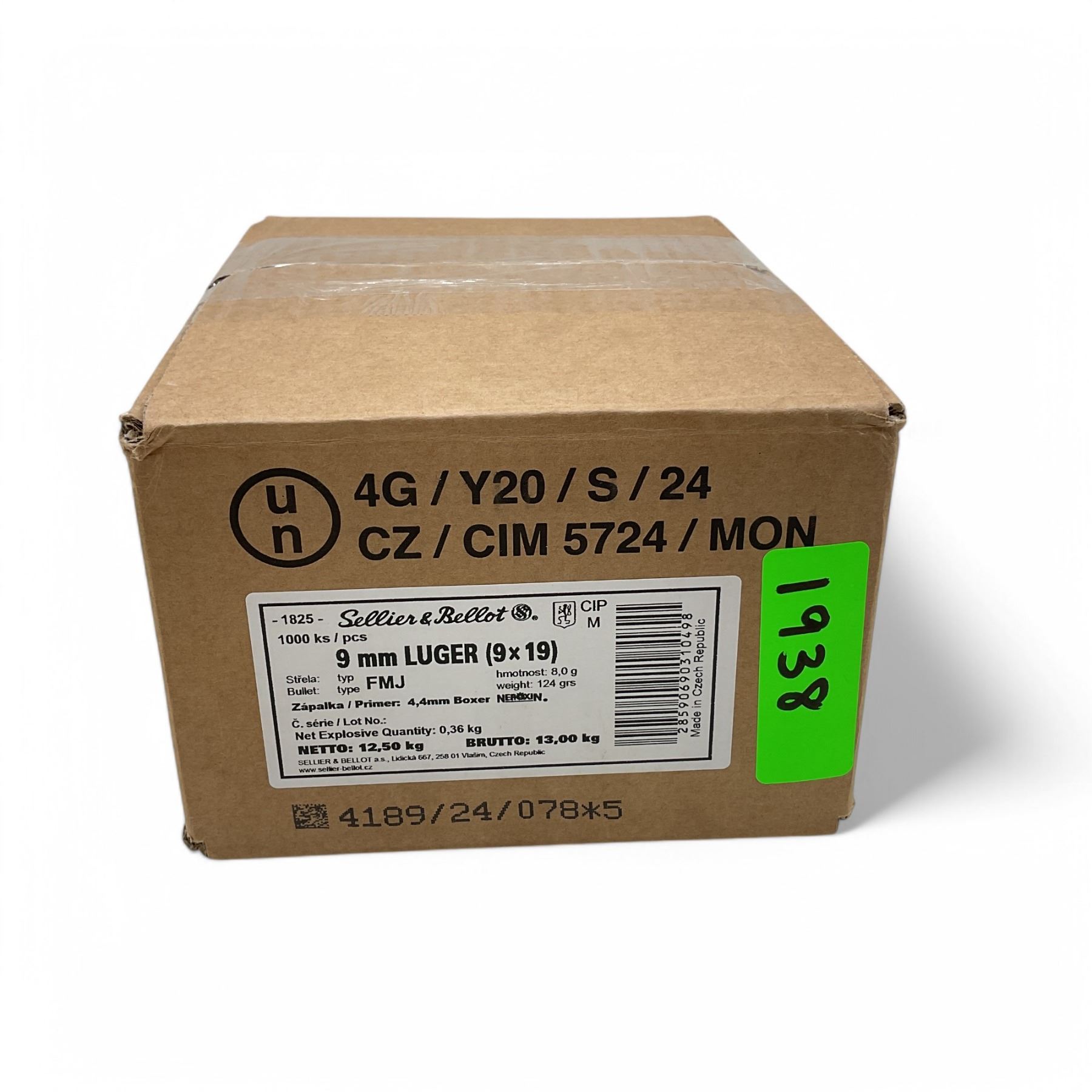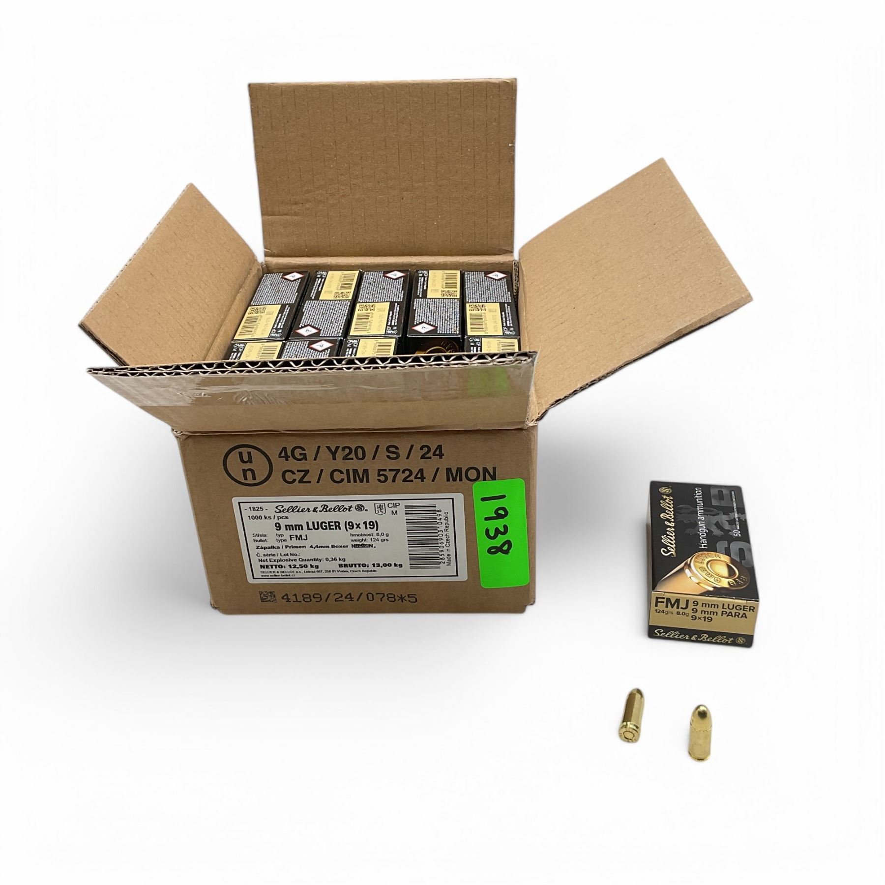 Lot 1938 Sellier & Bellot 9 mm 124 Grain FMJ Ammunition, 1000 Round Case