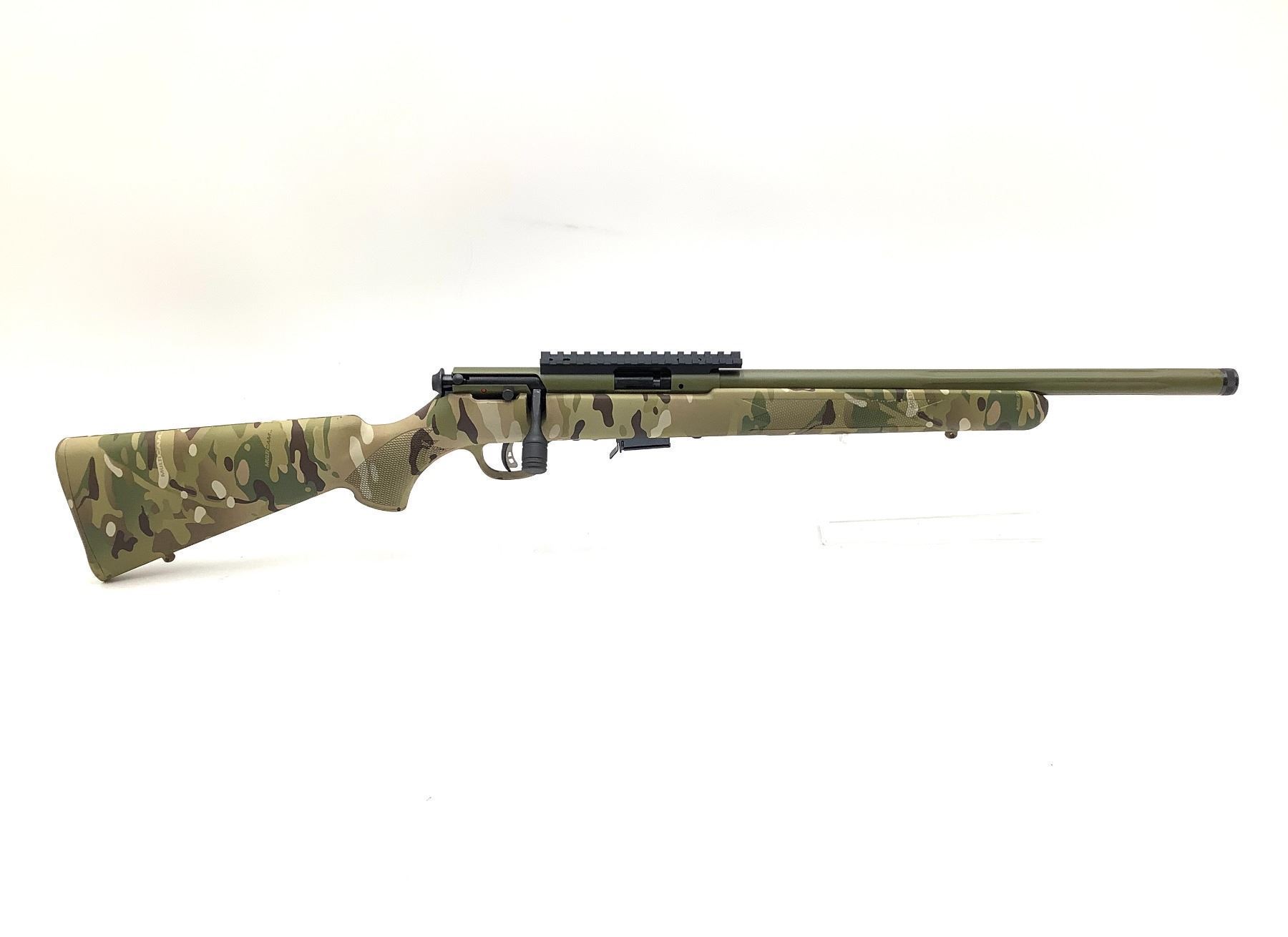 Savage Model 93R17 FV-SR Bolt Action Rifle 17HMR 16.5" Fluted Threaded Barrel Bazooka Camo, New. Detachable magazine, adjustable trigger. Rail mounted on receiver. This is a non-restricted firearm.