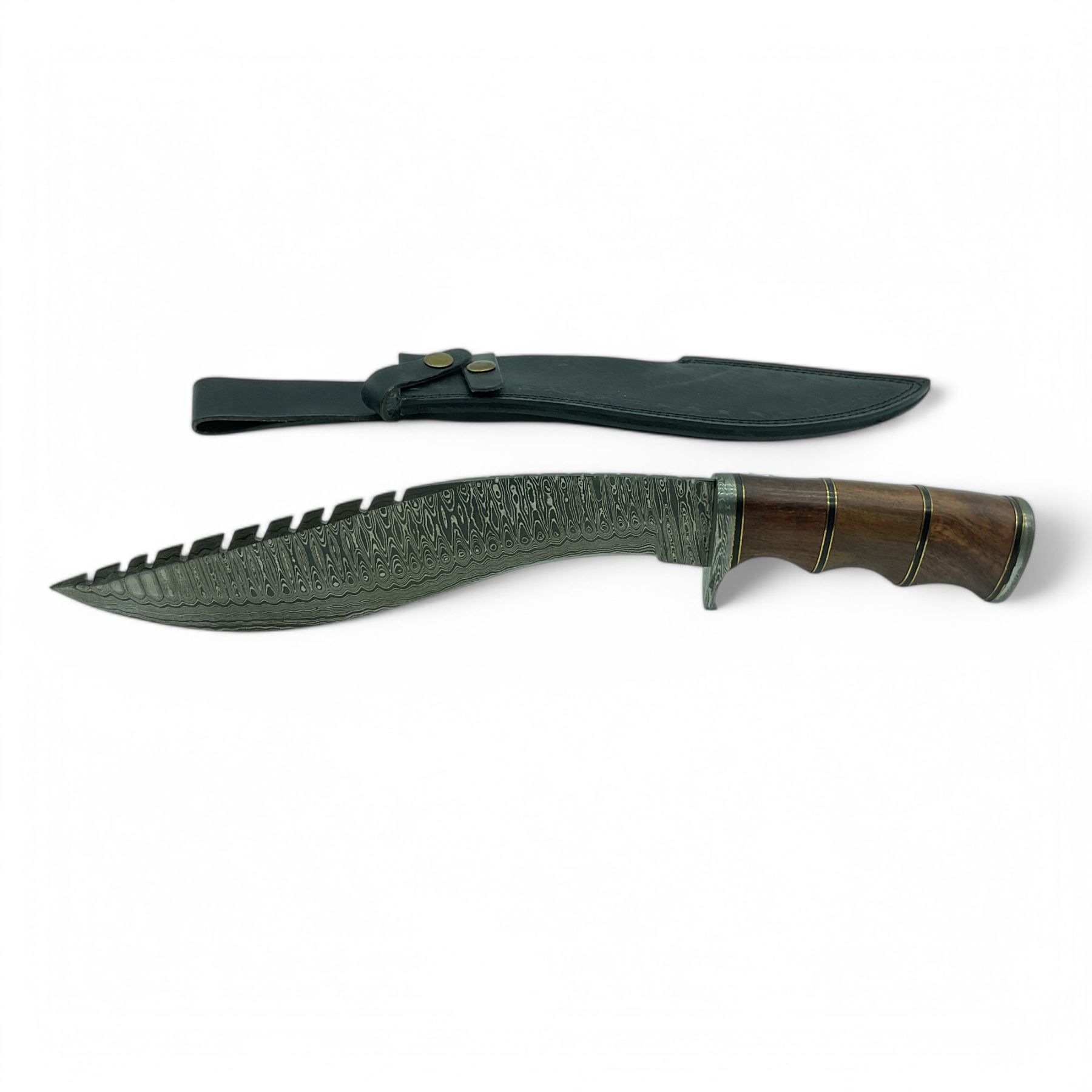 Hand Forged Damascus Fixed 9.5" Blade Kukri Knife with Leather Sheath, New