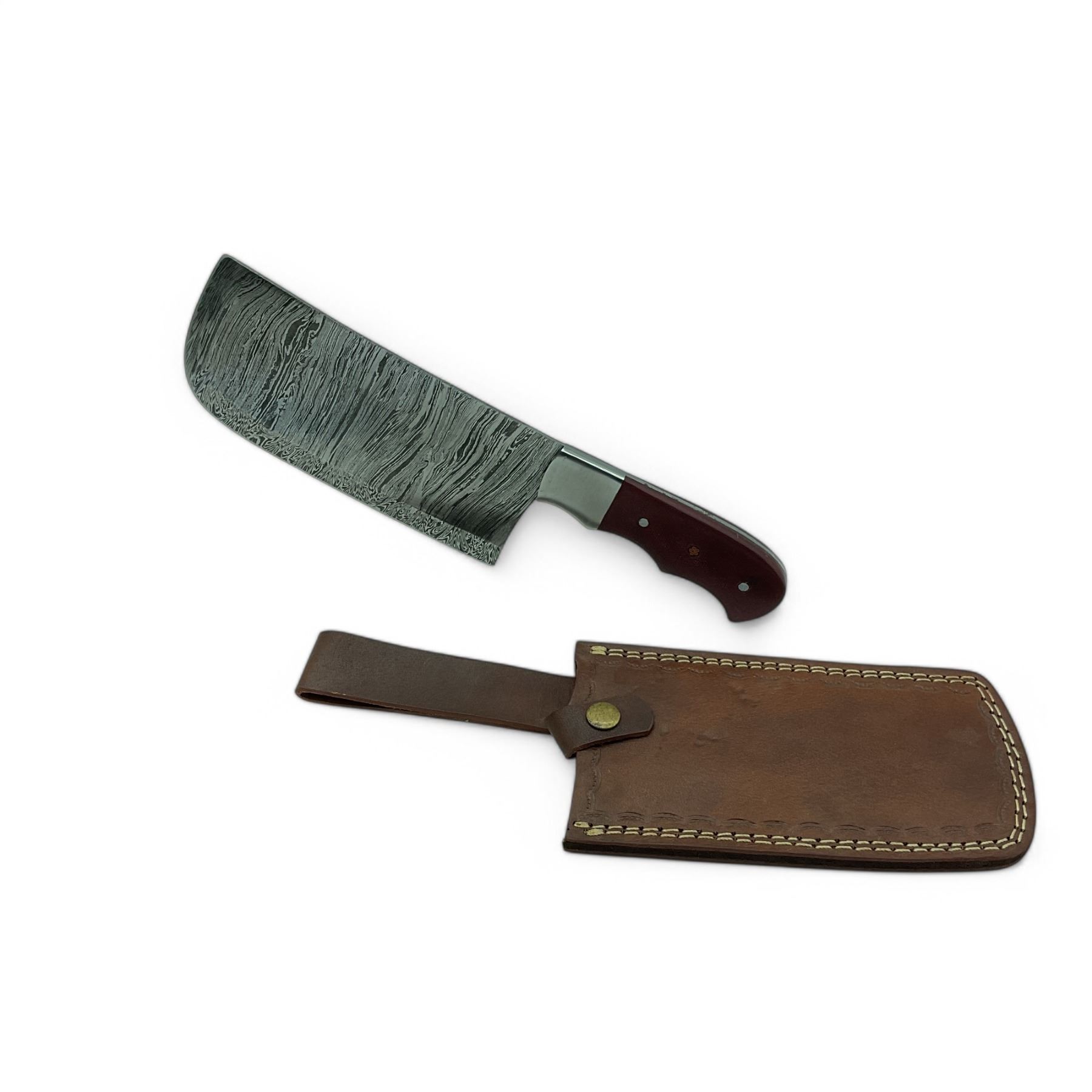 Hand Forged Damascus 7.5" Blade Butcher Knife with Leather Sheath, New