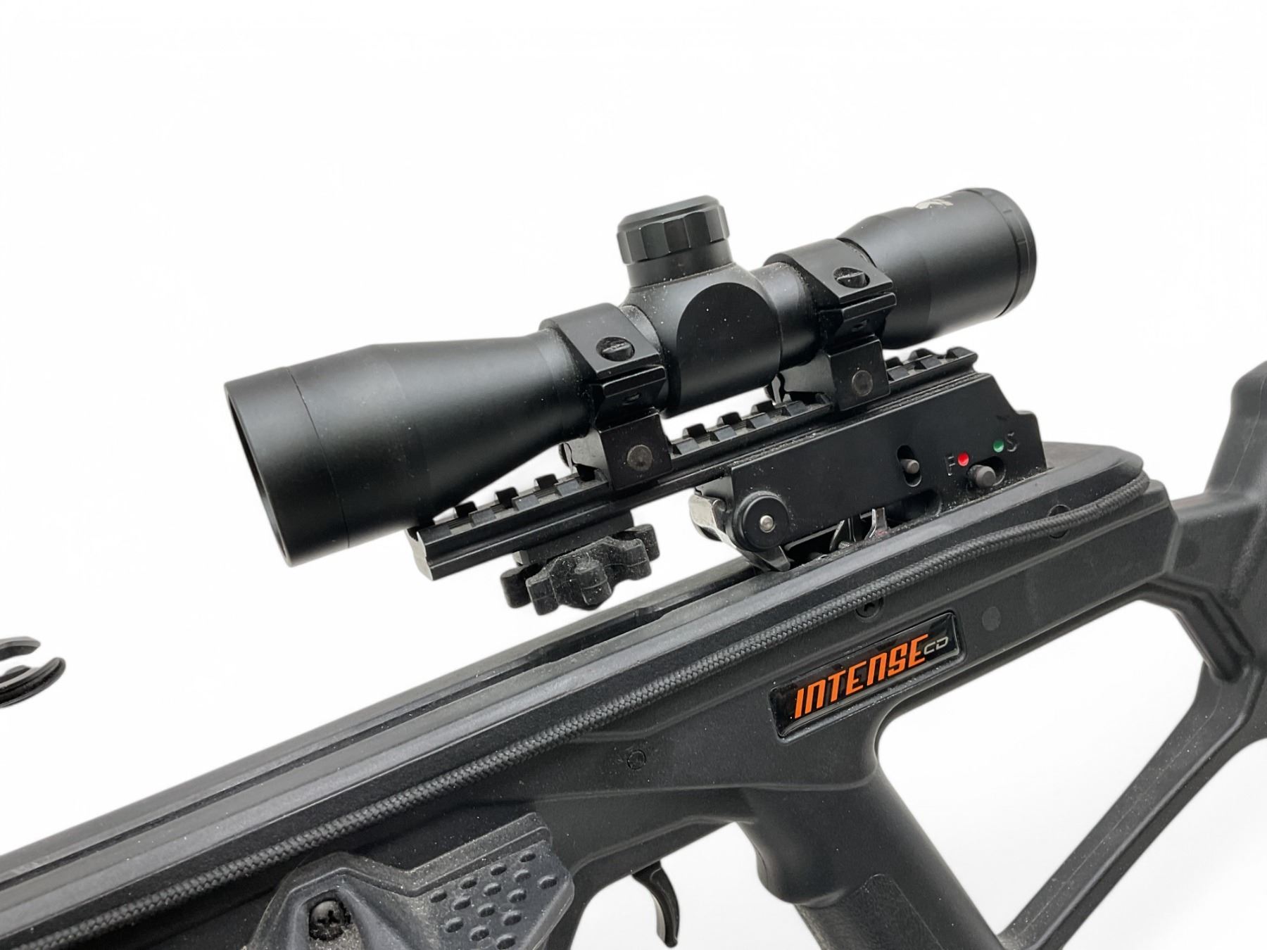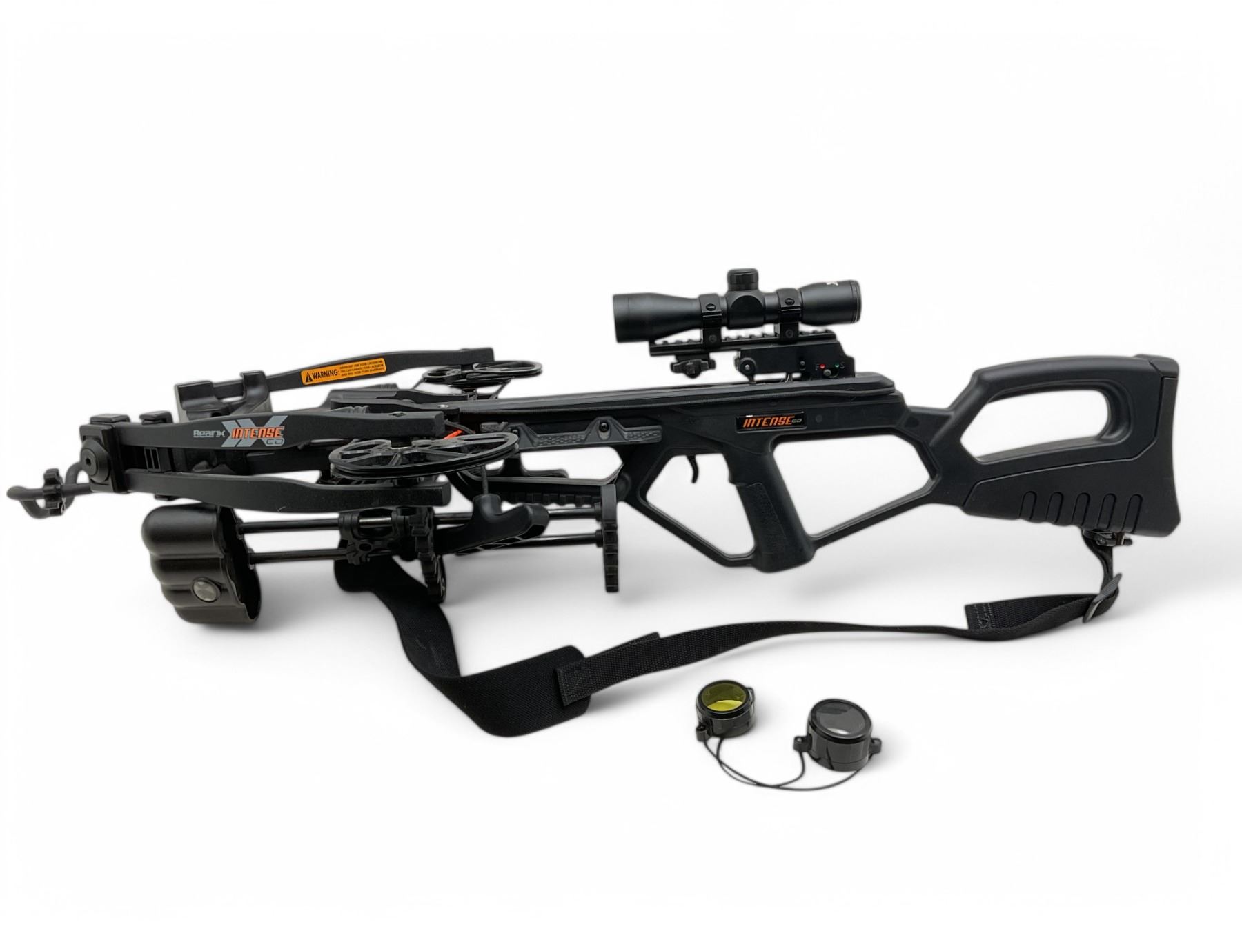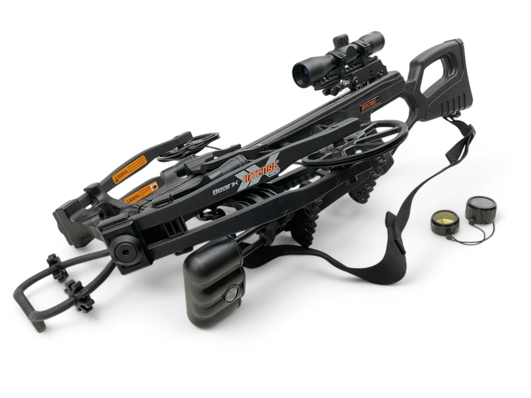 Bear Archery Intense CD Crossbow Black with 4X32 Scope And Quiver. Comes with cocking aide and sling.