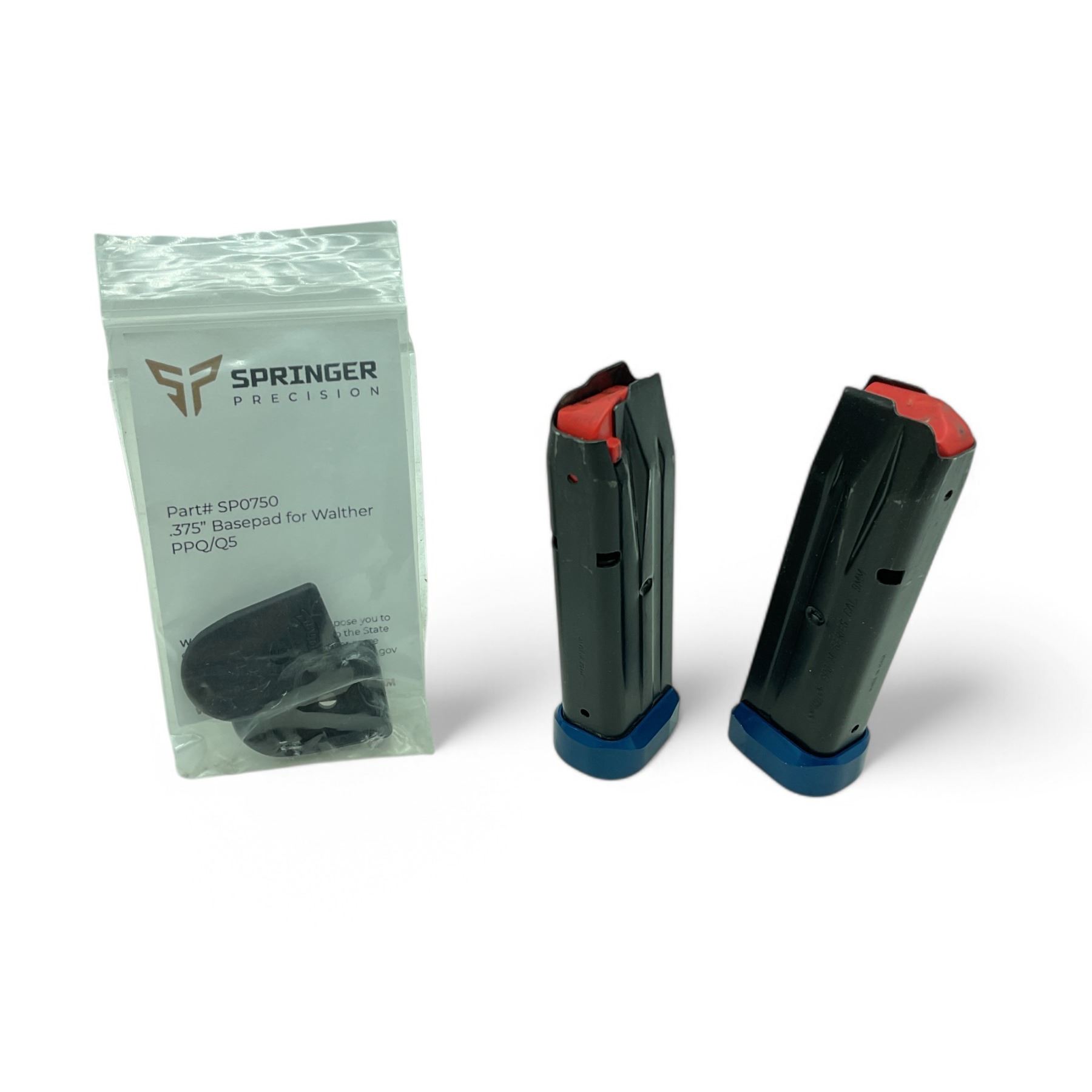 Walther PPQ M Series 9mm Pistol Magazine X 2 Qty and Springer Precision .375" Base Pad for Walther PPQ/ Q5