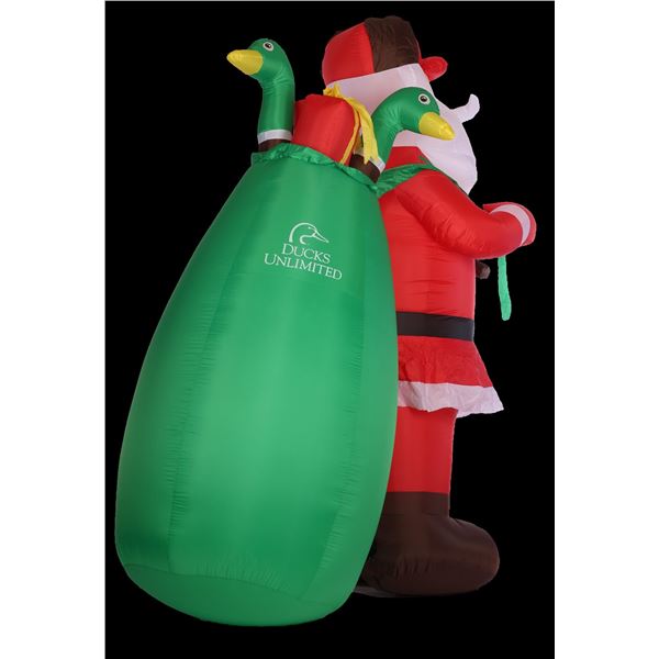 The inflatable Santa is a delightful addition to any yard, standing animpressive 9 feet tall and embodying thespirit of the holiday season. This oversized decoration features a whimsical Santa design that is sure to bringjoy and laughter to all who see it. The Santa comes equipped with a convenient pump, as well as tiesand stakesto ensure it remains securely in place throughout the season. Adding a unique touch, it proudly displays thestacked DU logo on Santa’s toy sack and the crest logo on his chest pocket along with a charming duckhead onhis cap. This festive figure not only enhances your holiday décor but also brings a sense of cheer and traditionto your home.