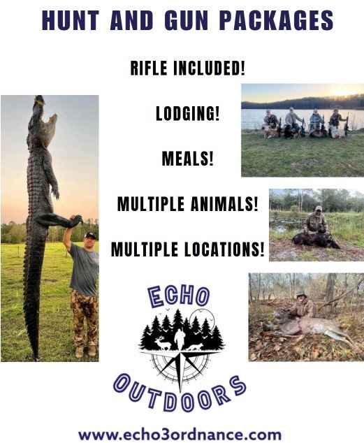Echo 3 Ordnance has donated a customizable AR build and 3 Day / 4 Night Turkey and Coyote hunt for 1 hunter. This hunting package has the hunting days to be May 16 – 18, 2025 and lodging dates of May 15-19, 2025. The AR rifle build is customizable in the following calibers 5.56, 350 legend, 400 legend, 450 bushmaster, 6.5 Grendel, 6mm ARC, 22 ARC, 224 Valkyrie, 308, 6.5 Creedmoor, 7mm-08, & 243, with some fees for upgrades/caliber selection. The hunt is self-guided (2023 – 100% success, 2024 – 90% success) with access to 4,000 acres of private land in Highland and Adam counties, Ohio. Included with the package is an Echo 3 Ordnance Rifle, 1 bearded gobbler, unlimited coyotes, lodging with breakfast and supper meals. Not included: Turkey guide (available at an additional fee), shotgun and shells required for turkey hunt. Your rifle will ship to the FFL dealer of your choice, and you will receive your rifle prior to your hunt to allow for sight in and to bring on your coyote hunt.