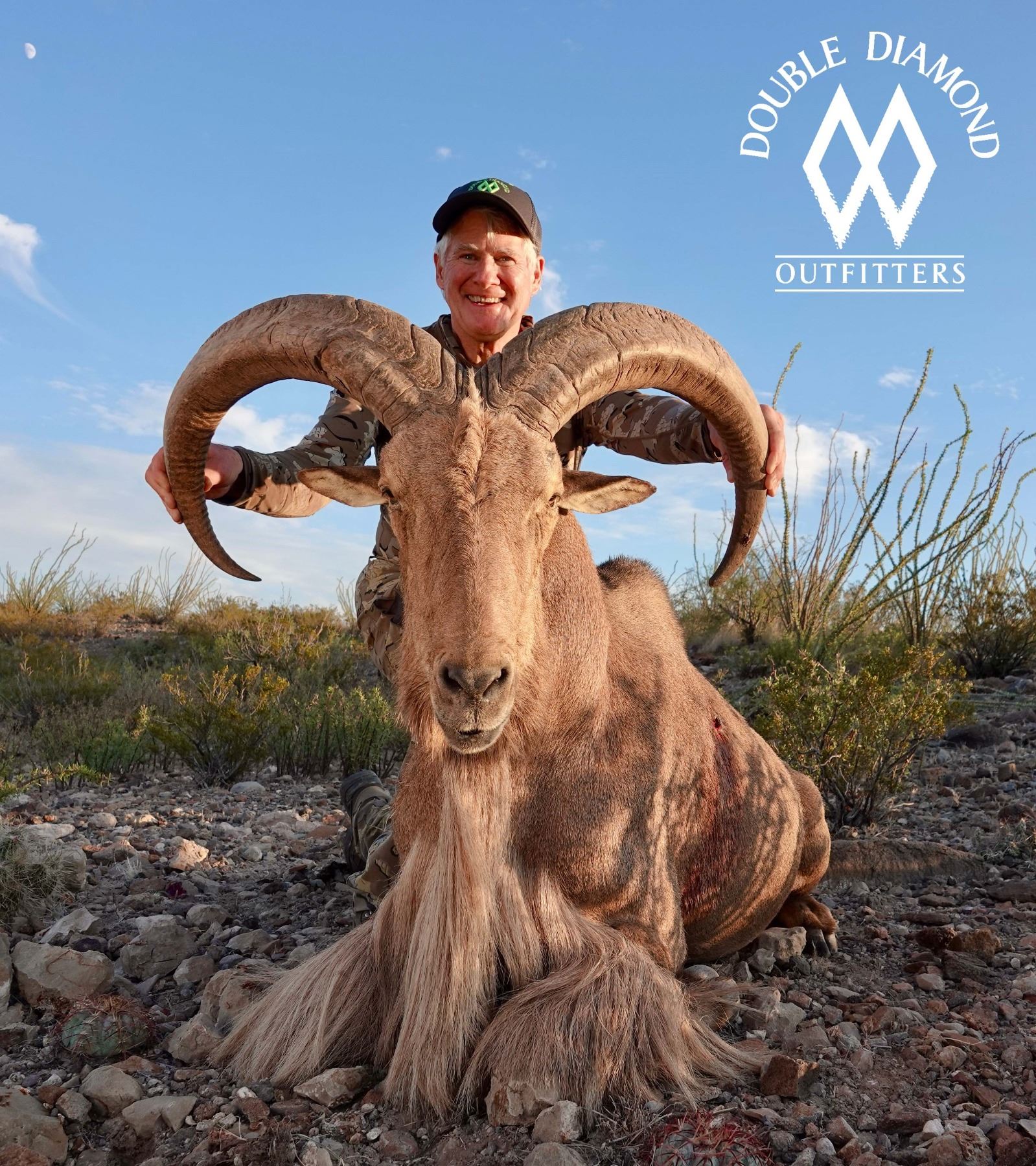 This hunt is for 1 hunter in the mountains of West Texas personally guided by Wes Mundy, owner/operator of Double Diamond Outfitters. This hunt is a 4 day, 3 night hunt for 1 trophy aoudad with all meals, lodging, guide, and caping your aoudad in the field included.