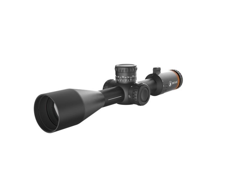 Gunwerks Magnus MTX rifle system in 7 mm PRC. It has a right hand, titanium action, 20 inch carbon wrapped barrel with a directional brake and a metal finish of graphite (black). The stock is Carbon Black with a Gunwerks floorplate and a 13.5 inch length of pull. The rifle is topped with a Revic Acura RS25i 5-25x50 rifle scope with a ballistic turret for Gunwerks 7mm 180gr Berger Hybrid loads.