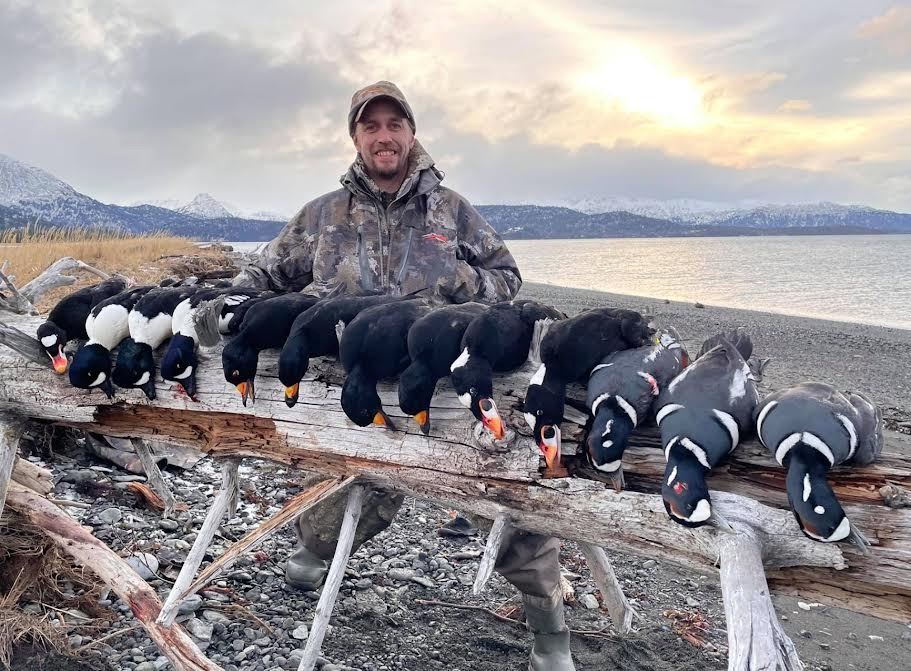 Travel to Kodiak Island, Alaska to hunt with Mike Odin of Mike Odin's Alaska Adventures on a 5- day/6-night hunt for guided Sea Ducks, self-guided Sitka Black-tailed deer, and fox. This hunt is for two hunters but other hunters may be added at the list price – this is an ideal hunt for 3 to 6 hunters! Hunt Kodiak's pristine wilderness trophy Sea Ducks, Sitka Black-tailed deer and fox for an exciting wing shooting and hunting adventure. High success rate - excellent opportunity for clients to harvest a wide variety of trophy Sea Ducks, a nice trophy buck, and fox. Method of take is shotgun sea duck hunts and hunter's choice for deer hunts.